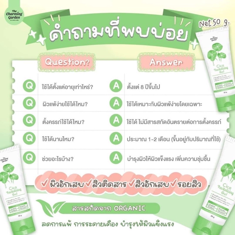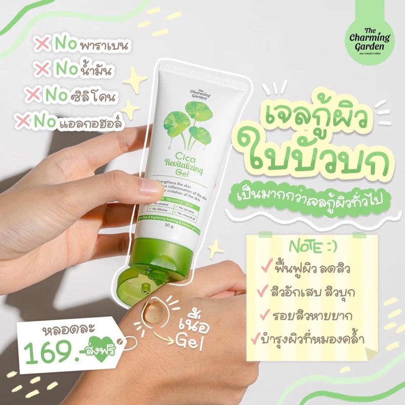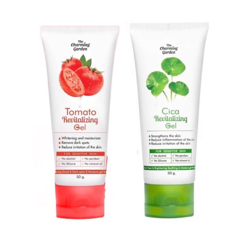 Cica Revitalizing Gel เจลกู้ผิวใบบัวบก /เจลมะเขือเทศ กู้ผิวโทรม Tomato Revitalizing Gel 50 g. The charming garden