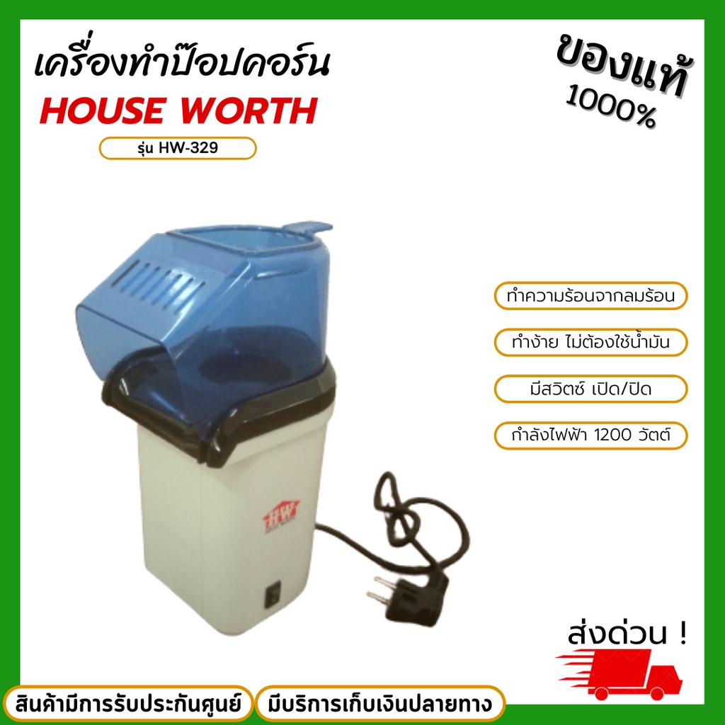 kty เครื่องทำป๊อปคอร์น HOUSE WORTH รุ่น HW-329 กำลังไฟฟ้า 1200 วัตต์ ทำง้าย ไม่ต้องใช้น้ำมัน เครื่องทำป๊อปคอร์นขนาดพอดี