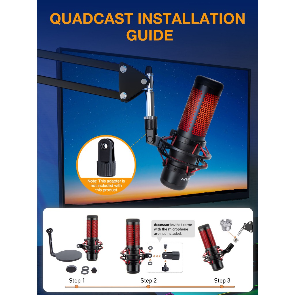 ขาตั้งไมค์ HyperX QuadCast สำหรับสตรีมมิ่ง+อัดเสียง ปรับมุมได้ 360° ใช้กับ Blue Yeti, Fifine AM8 อะแดปเตอร์ 3/8-5/8 นิ้ว
