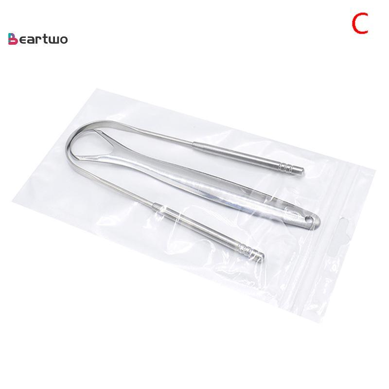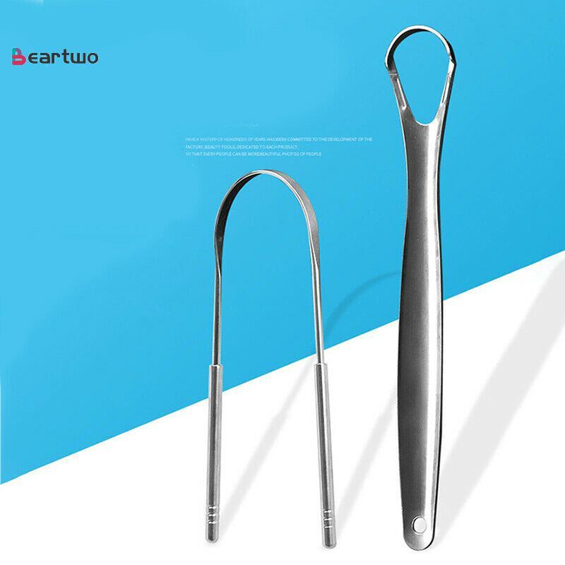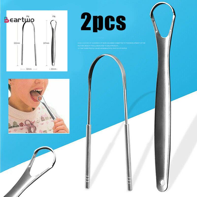 <beartwo-t> 2 ชิ้นที่ขูดลิ้นสแตนเลสทําความสะอาดลิ้นดูแลช่องปากสุขอนามัย Scraper