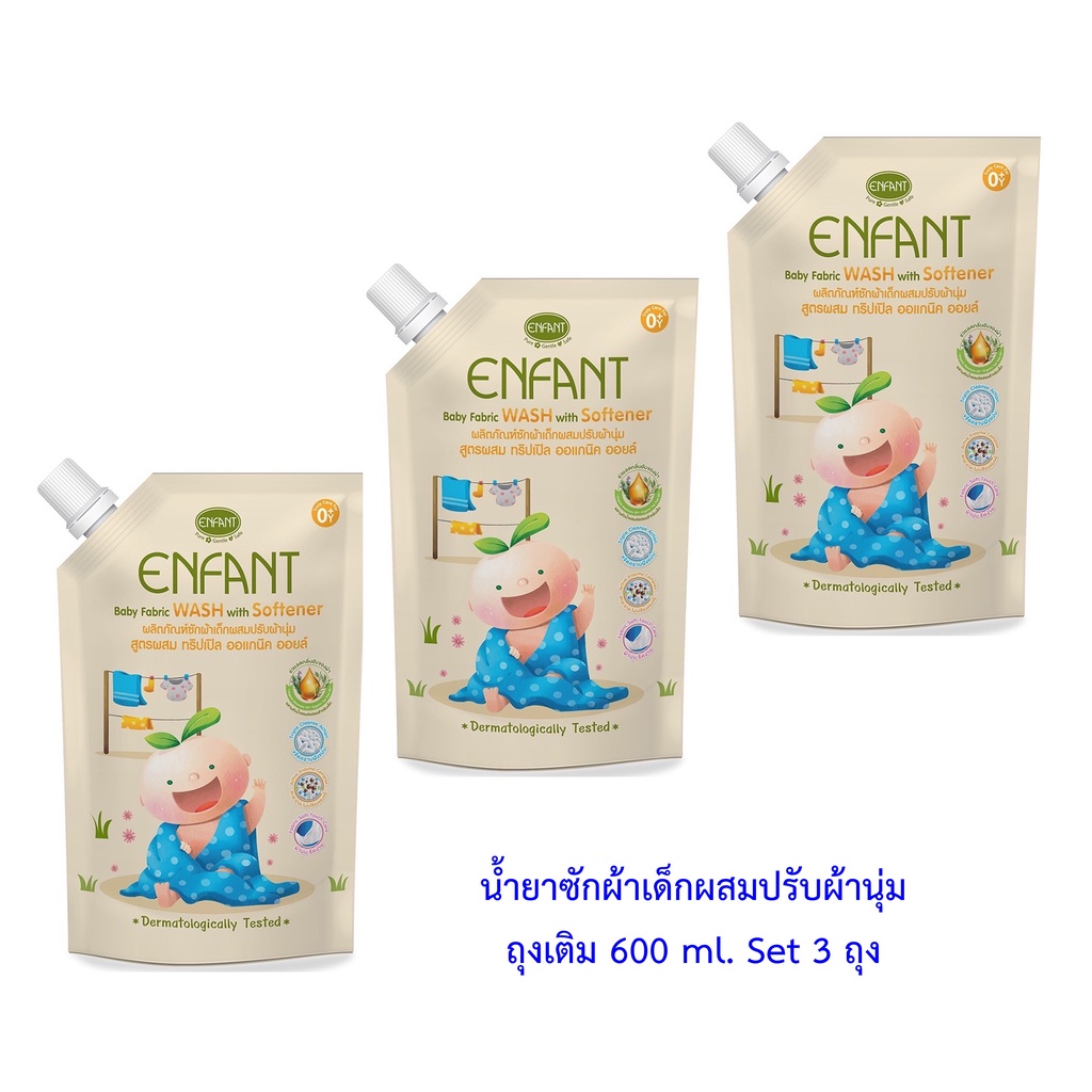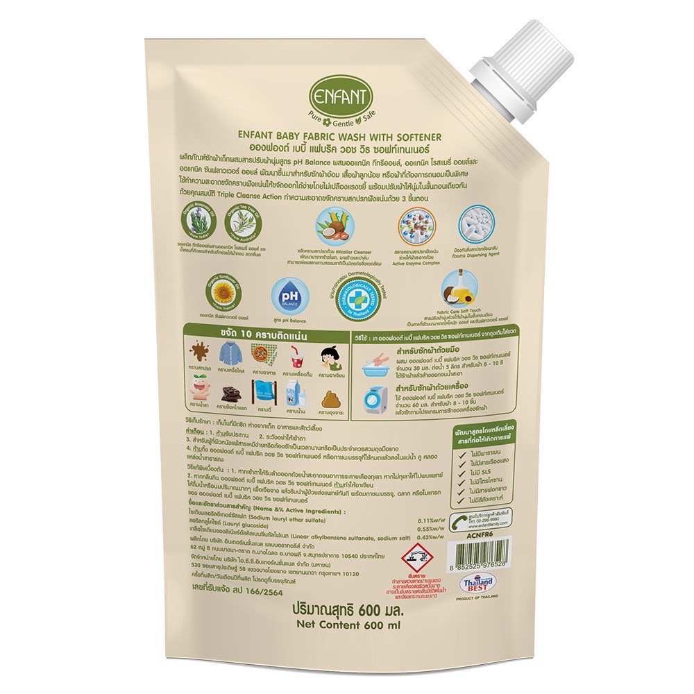 ออกงฟองต์ น้ำยาซักผ้าผสมปรับผ้านุ่ม Organic Essential Oil 600 ml. (Baby Fabric Wash with Softener)