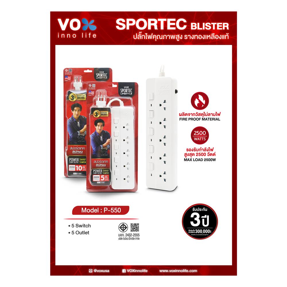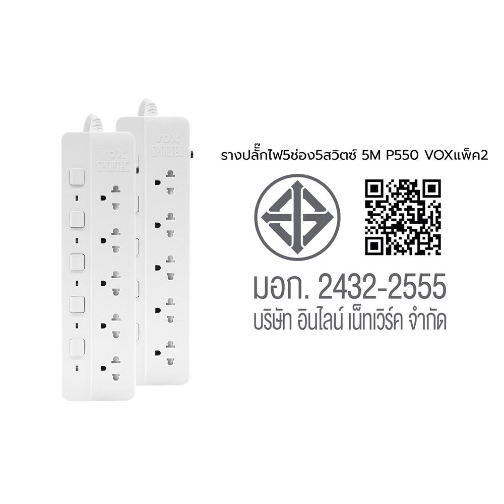 VOX รางปลั๊กไฟ 5 ช่อง 5 สวิตซ์ P-550 5 ม. (1 แถม 1) จัดส่งโดย HomePro