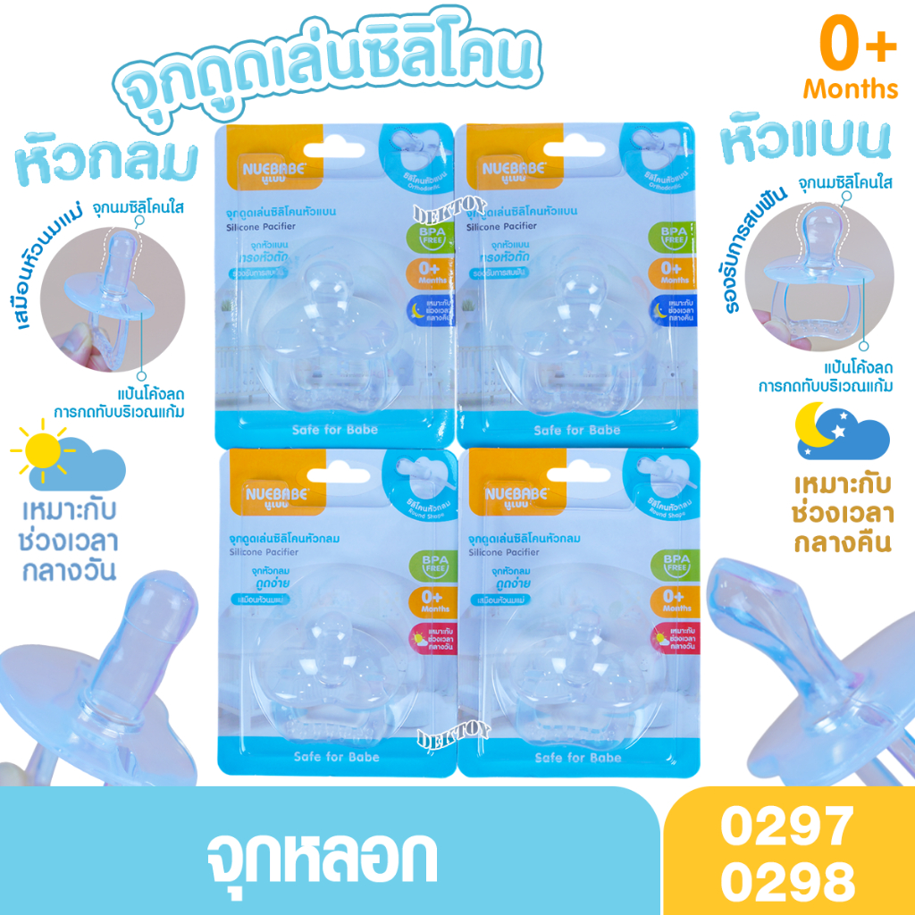 Nuebabe นูเบบ จุกนมหลอก จุกซิลิโคนดูดเล่น ซิลิโคนทั้งอัน หัวกลม/หัวแบน