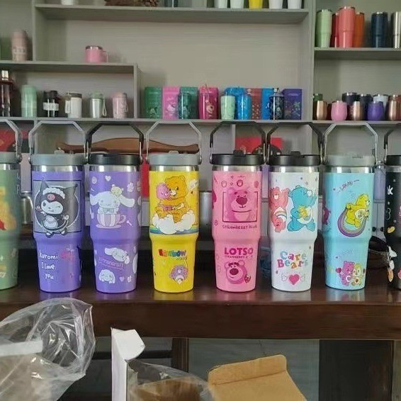 [พร้อมสต็อก] 30ออนซ์ รถถ้วยลายการ์ตูนความจุขนาดใหญ่สแตนเลสสูญญากาศกระติกน้ําร้อนถ้วยแบบพกพาจับถ้วยน้ําครัวเรือนสํานักงานถ้วยกาแฟ
