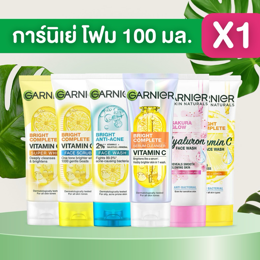 (( 1หลอด ))🍋การ์นิเย่ โฟมล้างหน้า Garnier ขนาด 100 มล. สบู่ล้างหน้า โฟม ล้างหน้า หน้าใส ลดสิว รักษาสิว