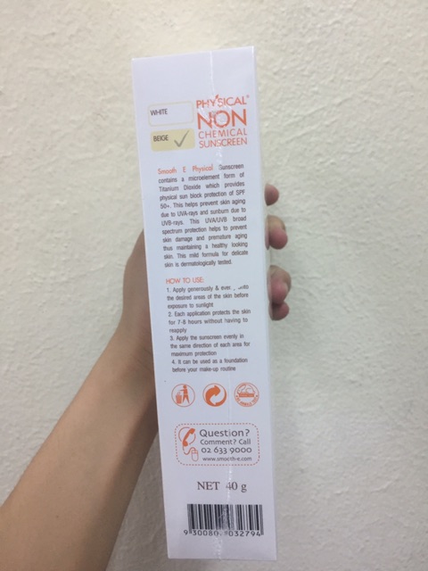 Smooth E Phisical White babyface UV Expert (Beige) SPF50 PA+++ ครีมกันแดดสีเบจ 40 กรัม