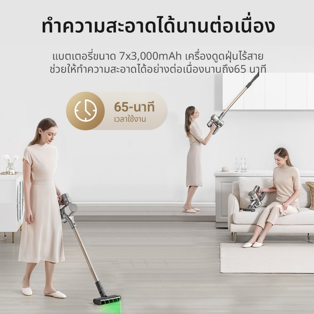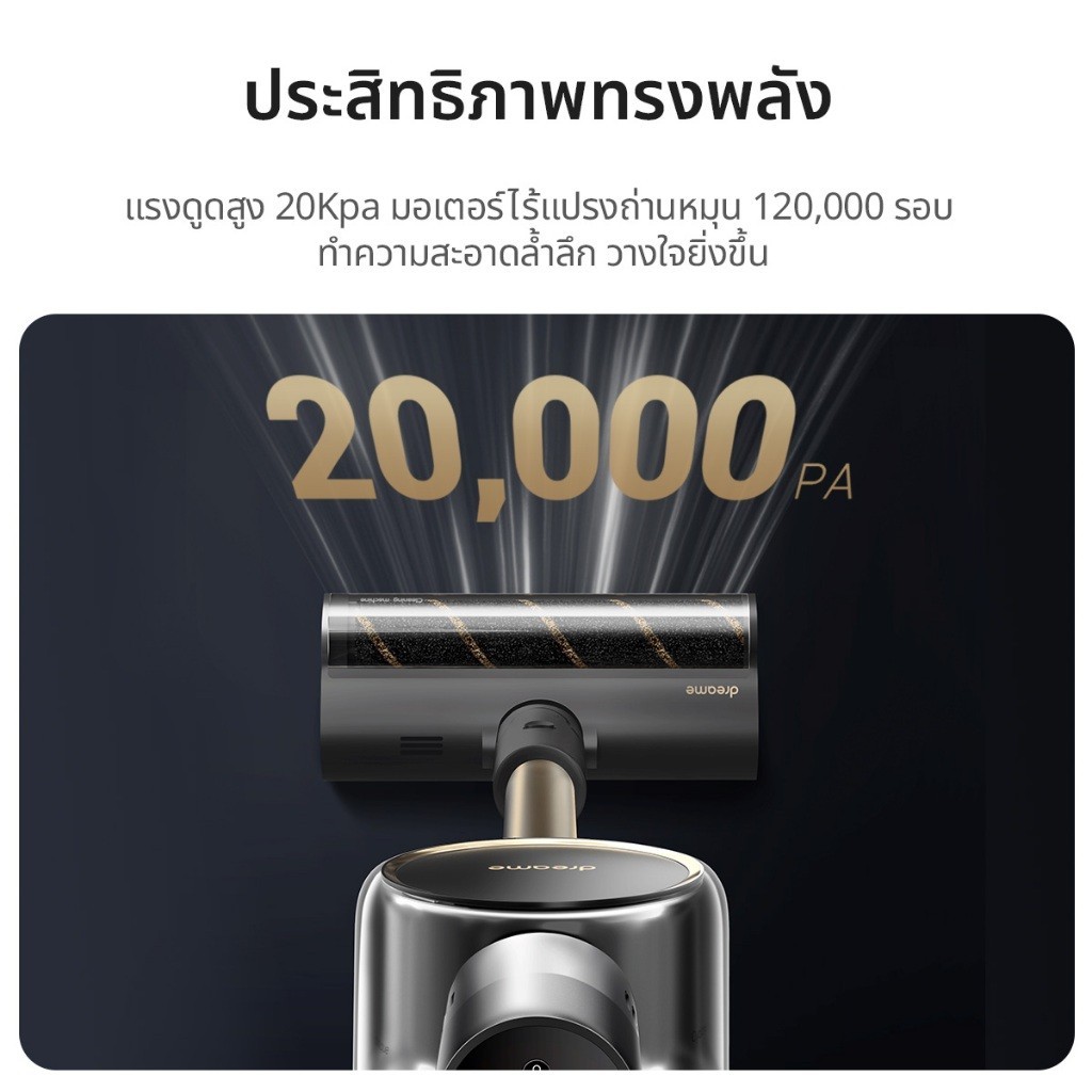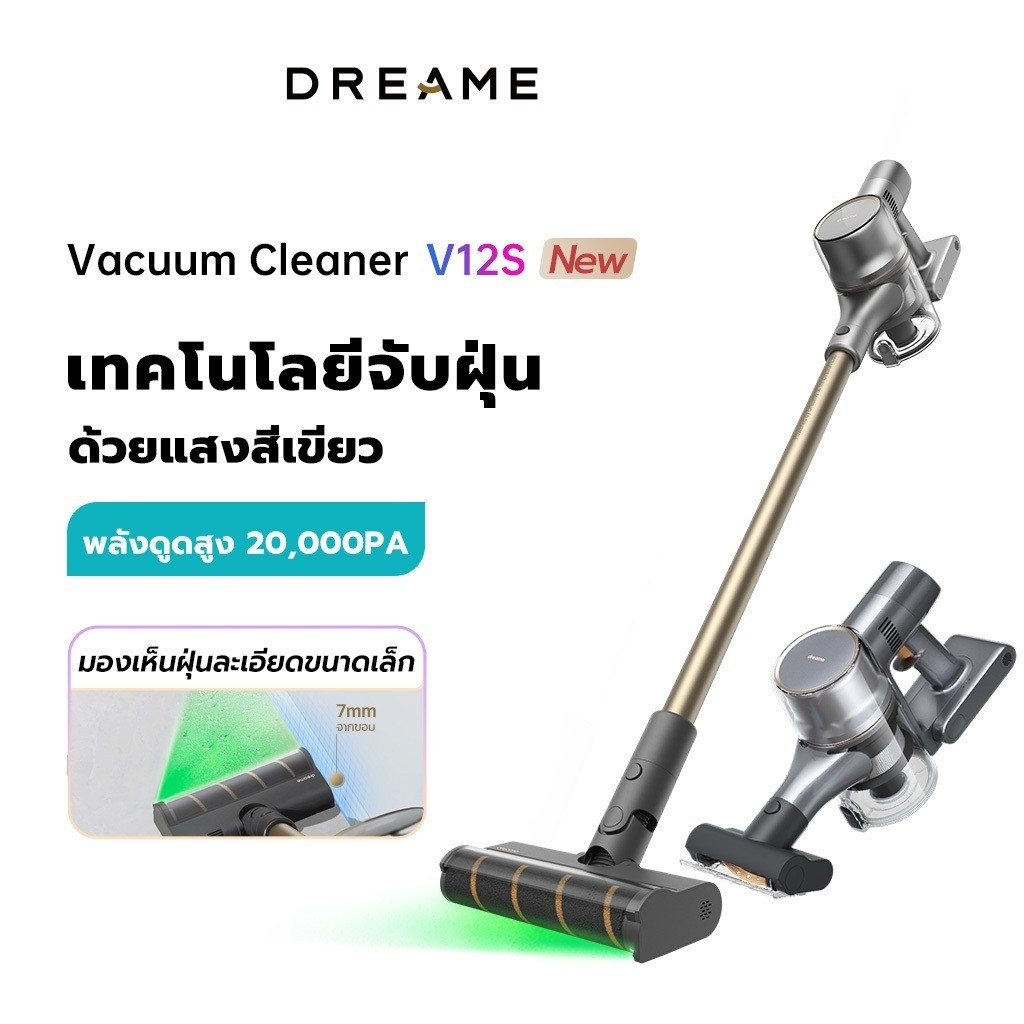 Dreame V12s Vacuum Cleaner เครื่องดูดฝุ่นไร้สาย เทคโนโลยีจับฝุ่นด้วยแสงสีเขียว ทำความสะอาดติดขอบ 7 มม. แรงดูด 20KPa