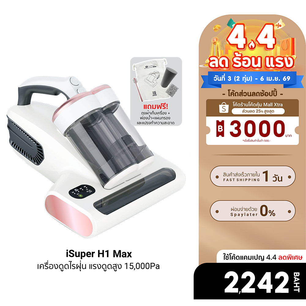 [ลดเหลือ 2242] iSUPER Anti Mites Vacuum Cleaner H1 Max เครื่องดูดไรฝุ่น เครื่องกำจัดไรฝุ่น แรงดูดสูง 15,000 Pa -1Y