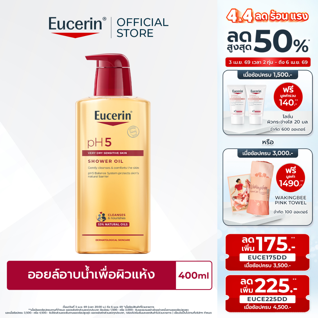 Eucerin pH5 VERY DRY SENSITIVE SKIN SHOWER OIL 400 ML ออยล์อาบน้ำผสมน้ำมัน สำหรับผิวแห้งมาก บอบบางแพ้ง่าย