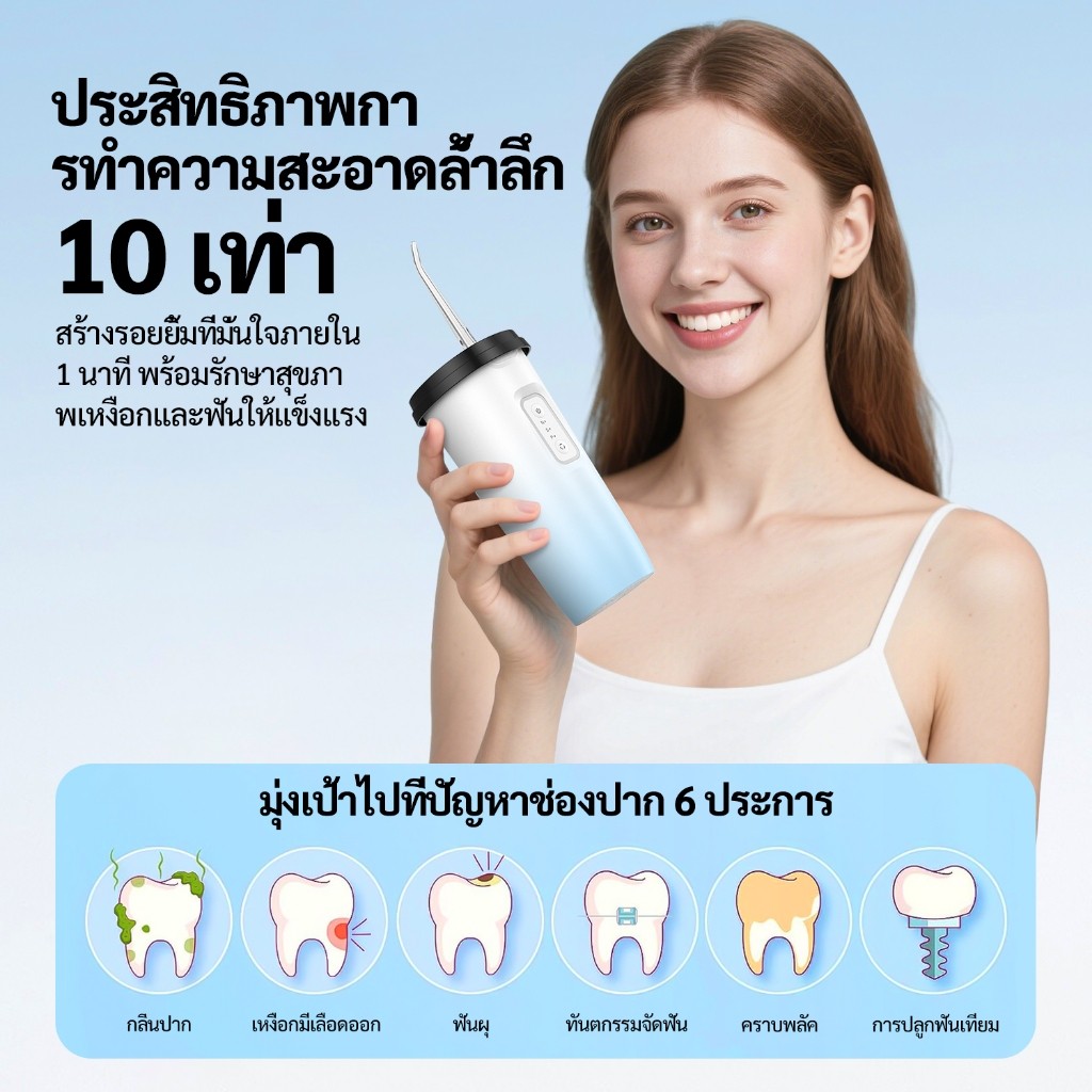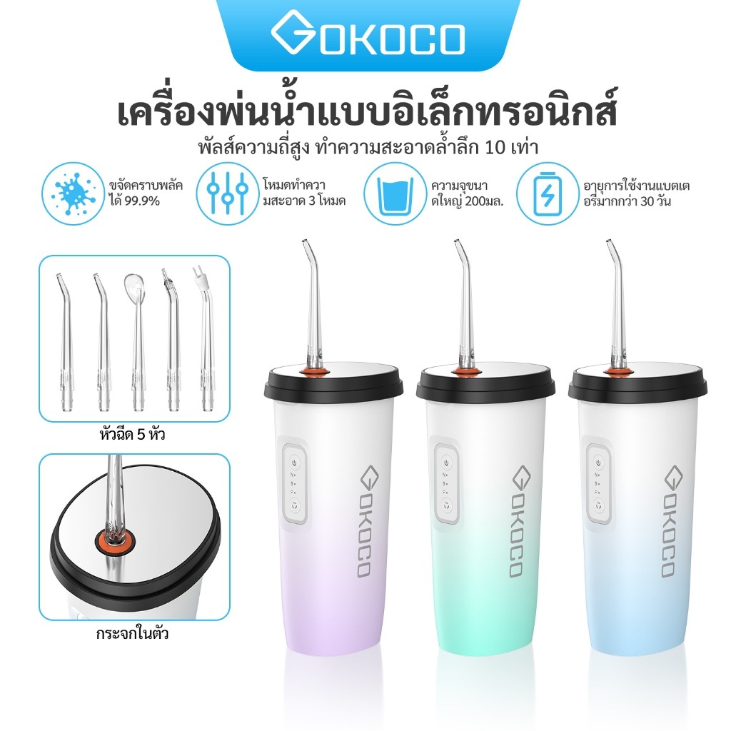 GOKOCO Water Flosser เครื่องล้างฟันพกพา ที่มีประสิทธิภาพกําจัดกากในช่องปาก แบบที่มีสไตล์ 200ml