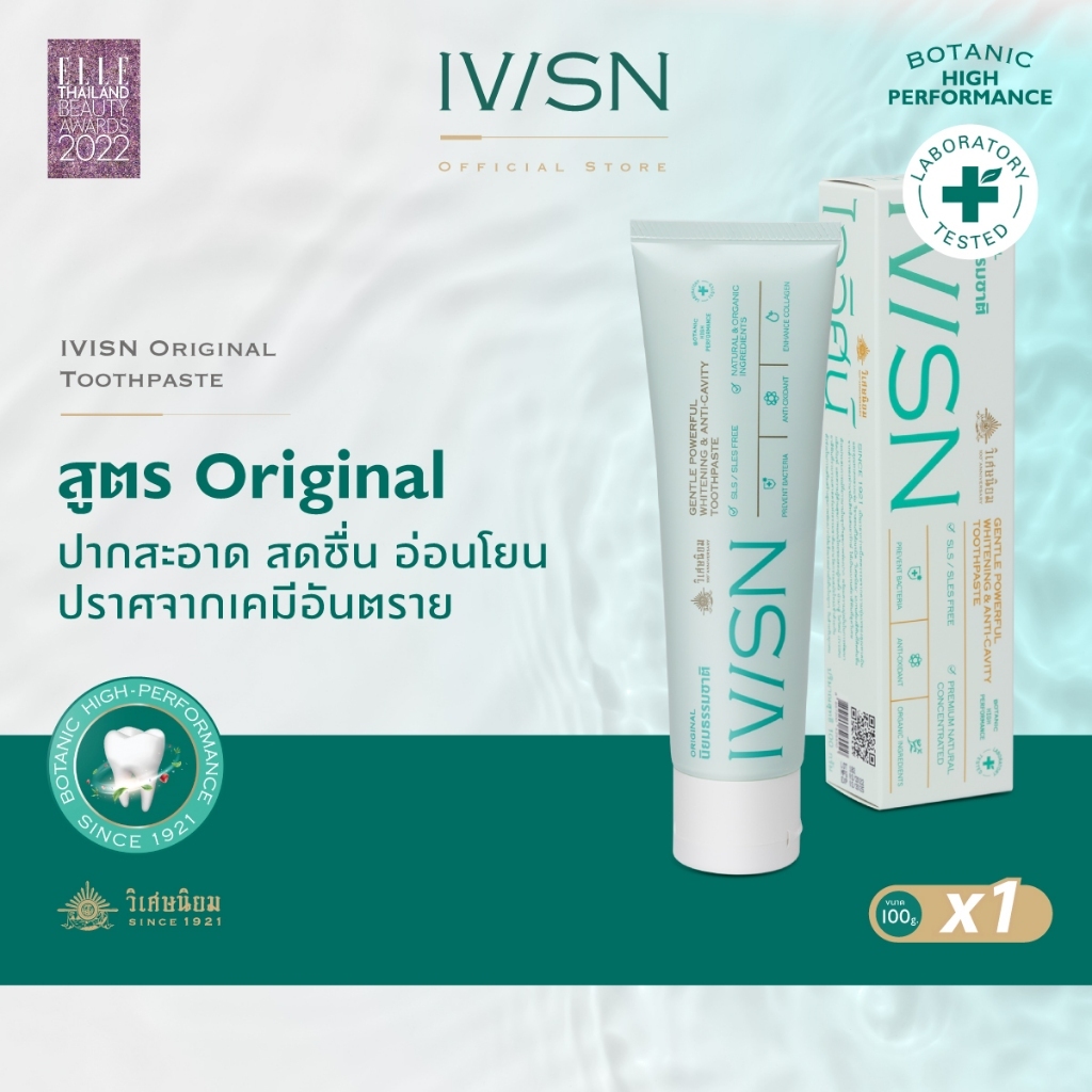 IVISN ยาสีฟันไอวิศน์ สูตร นิยมธรรมชาติ Gentle Powerful Whitening & Anti-Cavity Toothpaste - Original (100 g)