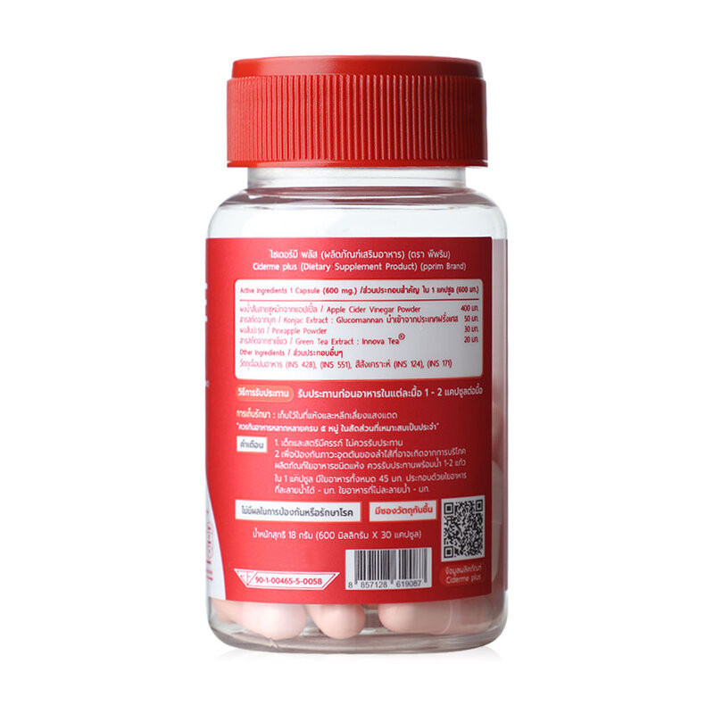 PPRIM Ciderme Plus 30 Capsules ผลิตภัณฑ์เสริมอาหารแอปเปิ้ลไซเดอร์แบบเม็ดสูตรใหม่ 30แคปซูล.