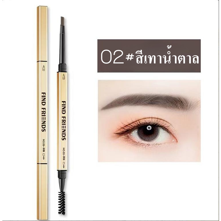 ดินสอเขียนคิ้ว เครื่องสำอางสำหรับผู้หญิง แบบหมุนออโต้ กันน้ำ พร้อมแปรง ติดทนนาน ดินสอเขียนคิ้วแบบหมุน 2 in 1