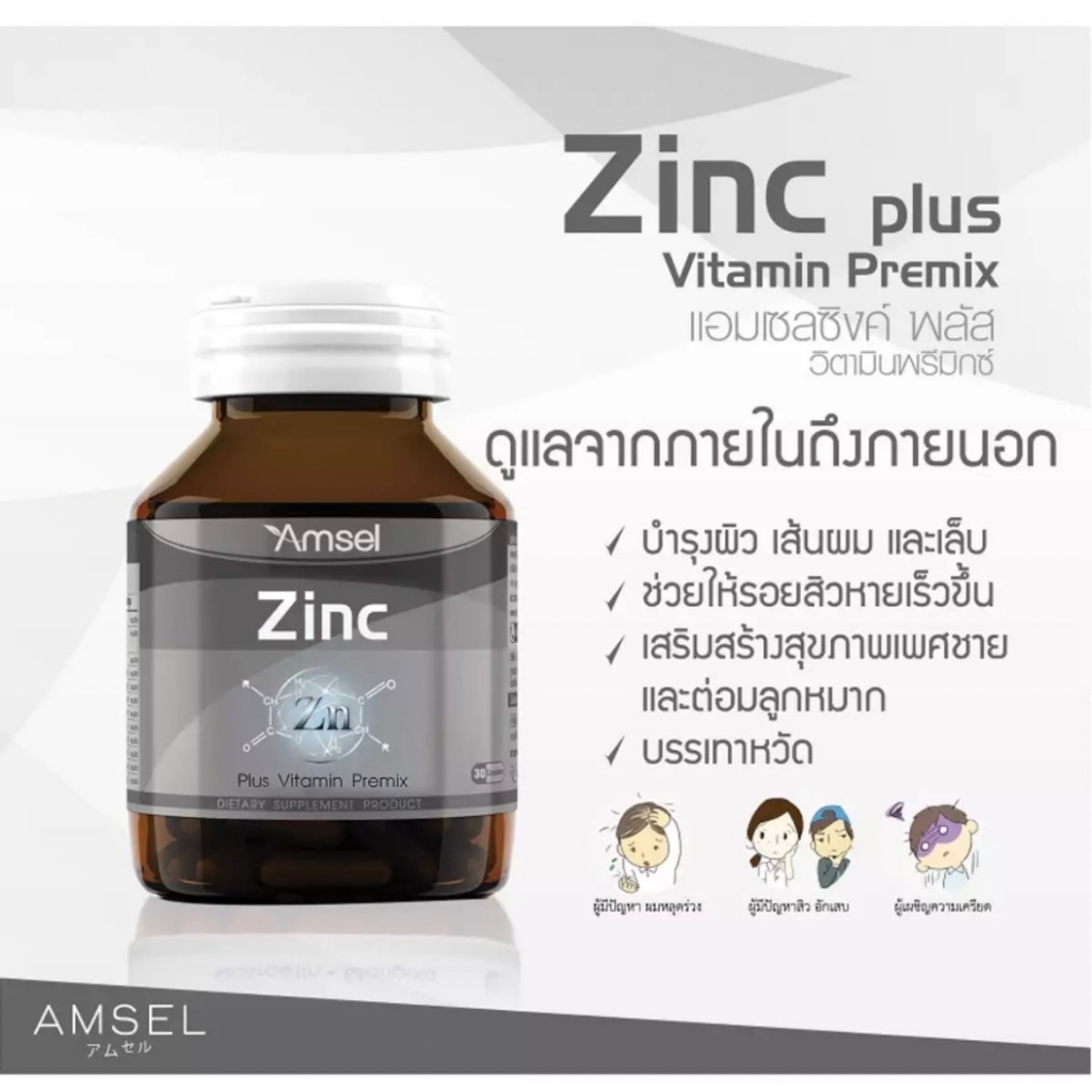[แพ็คคู่] Amsel Zinc Plus Vitamin Premix 30's +Amsel Multi Vit Plus Mineral 40's