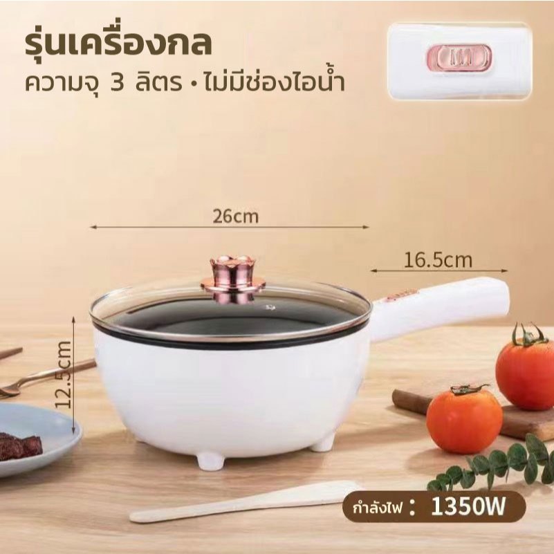 BEDDY กะทะไฟฟ้า กะทะไฟฟ้าเอนก หม้อกะทะไฟฟ้า All-in-one ผัด อุ่น ตุ๋น ต้ม เหมาะสำหรับ 3-4คน ไม่ติดหม้อ ขนาด 26/30 ซม.ความจฺ 3/4L