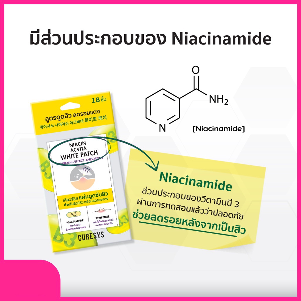 Curesys Niacin Acvita White Patch 18 dots แผ่นแปะสิว ดูดซับสิวพร้อมลดรอย ดูดเกลี้ยง แผ่นบาง เนียน ติดแน่น
