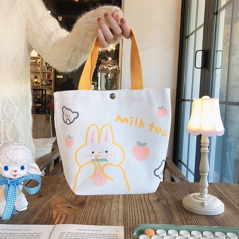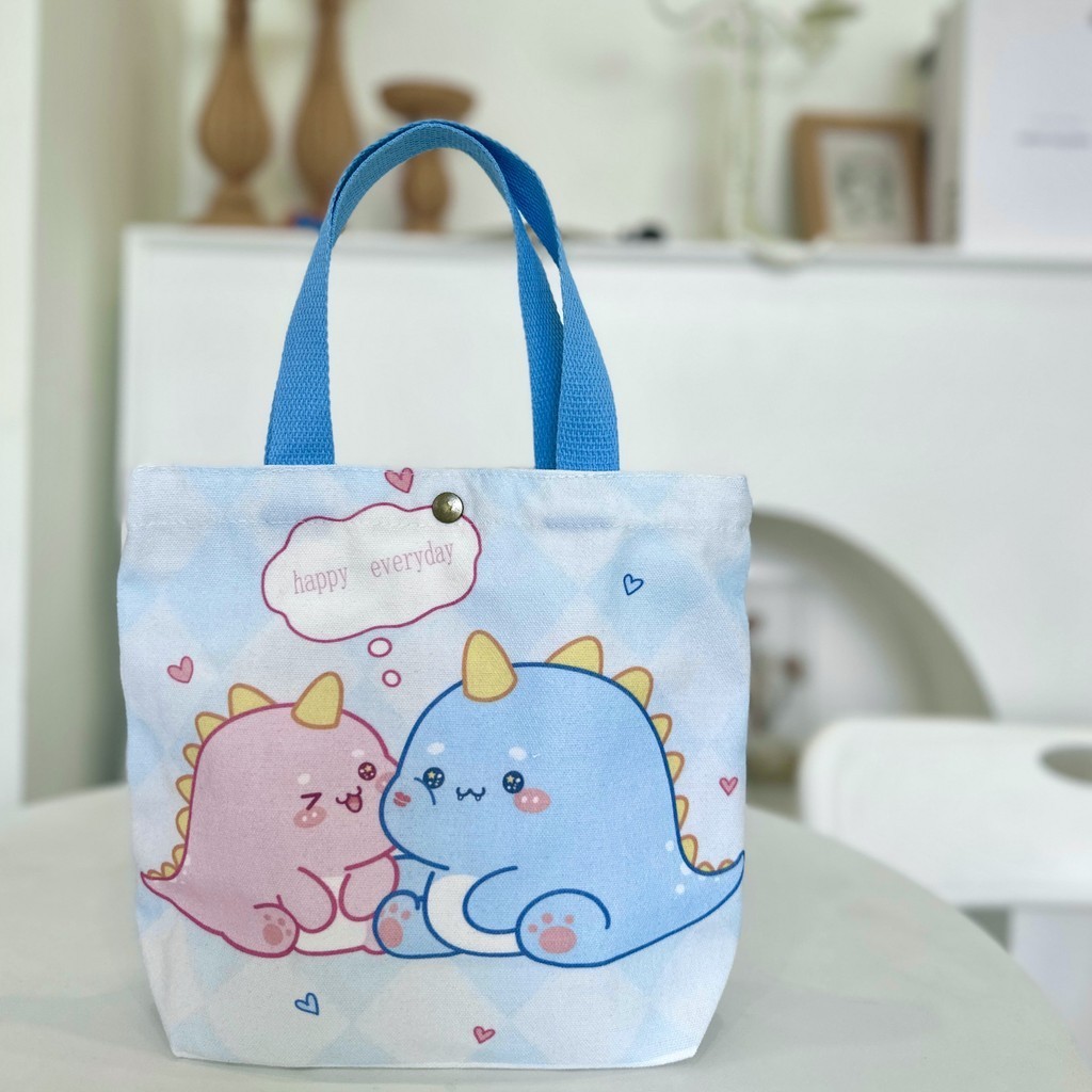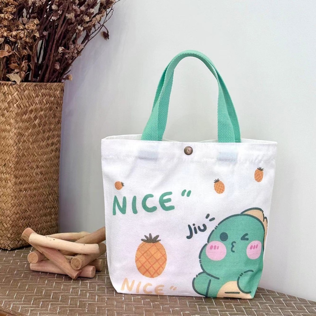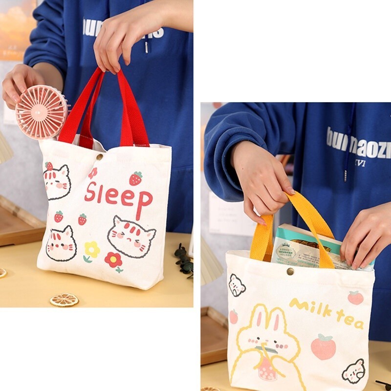 ผ้าแคนวาส ทรงโท้ท สําหรับผู้หญิง กระเป๋าสะพายไหล่ พับได้ ถุงผ้าไม่ทอ ผ้าสปันบอนด์ ลายการ์ตูนน่ารัก ออกไปข้างนอกสะดวกมาก