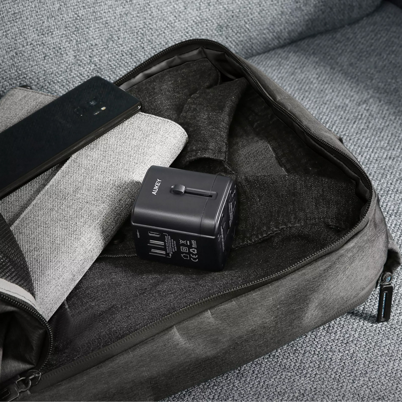 AUKEY หัวแปลงปลั๊กไฟ Universal Travel Adapter มาพร้อม ช่อง USB-C และ USB-A รุ่น PA-TA01 สีดำ