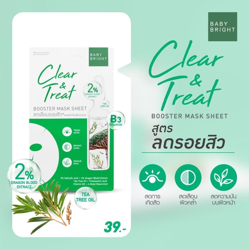 Baby Bright Booster Mask Sheet เบบี้ไบร์ท บูทเตอร์มาร์กชีท 20 กรัม มาส์กหน้า แผ่นมาส์ก