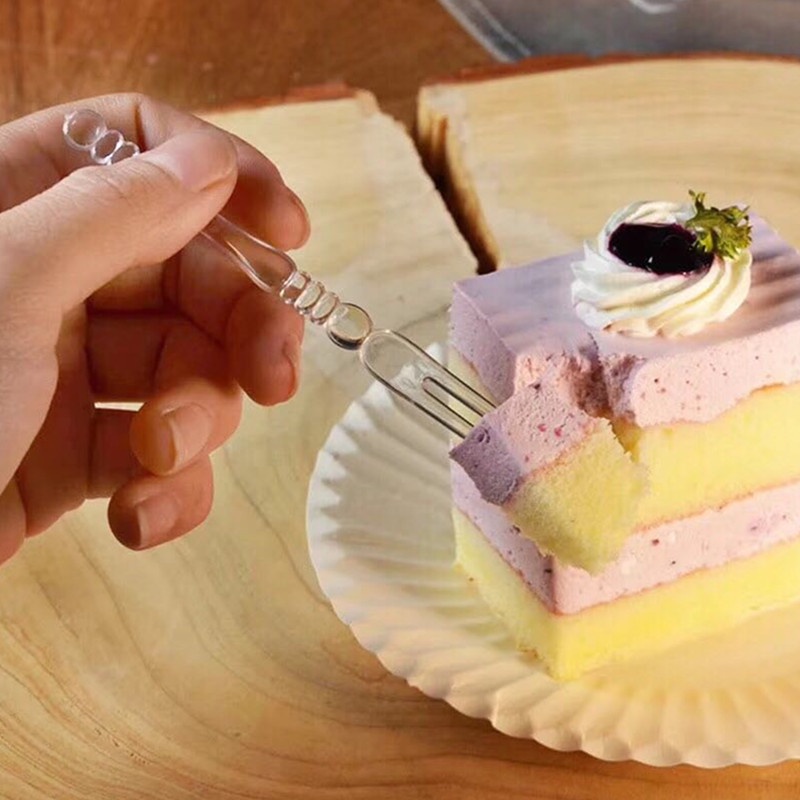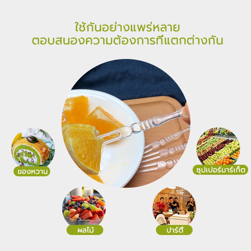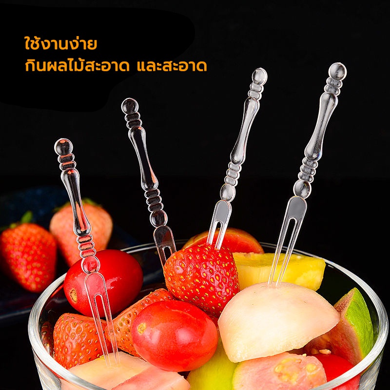 ส้อมพลาสติก สำหรับใช้จิ้มรัปประทาน ขนมหวาน จิ้มผลไม้ แพคละ100 ชิ้น