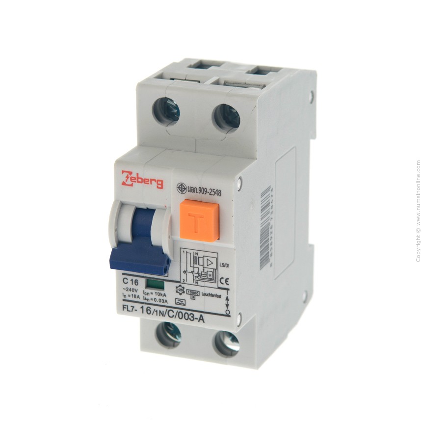 เบรกเกอร์กันดูด 16A 2P ZEBERG F7L