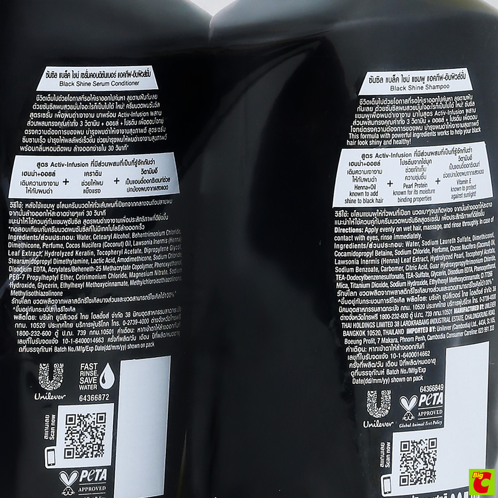 ซันซิล แบล็ค ไชน์ แชมพูสระผม 325 มล. และ เซรั่มคอนดิชันเนอร์ 300 มล. แพ็ค 1+1