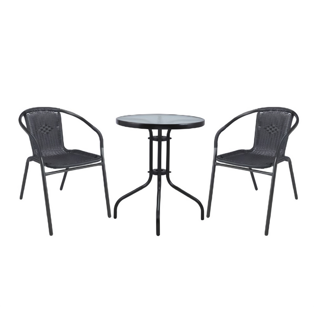 Lucky😸ชุดโต๊ะเก้าอี้ 3 ชิ้น สำหรับกลางแจ้ง ชุดเฟอร์นิเจอร์ระเบียงในสวน เก้าอี้พลาสติกมีพนักพิง