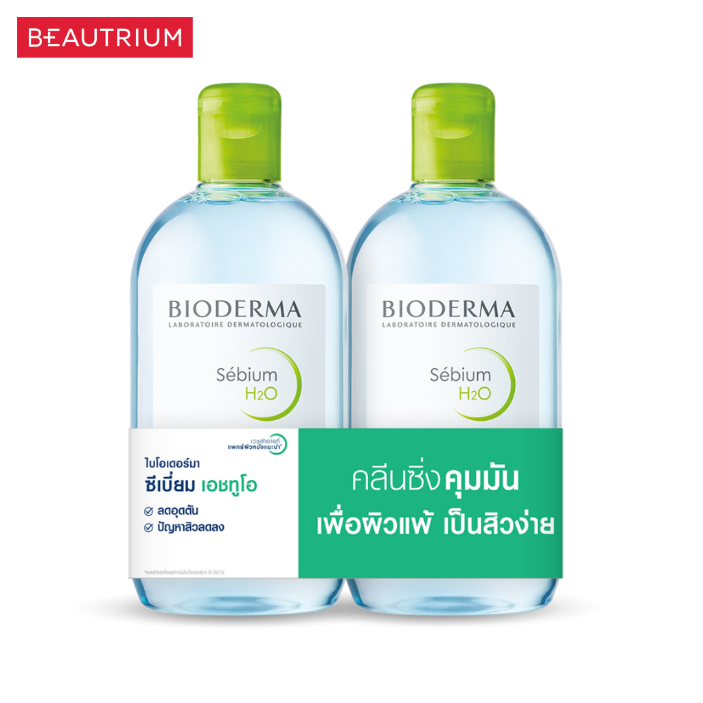BIODERMA Sebium H2O Micellar Water Cleansing Makeup Remover ที่เช็ดเครื่องสำอาง 500ml x 2