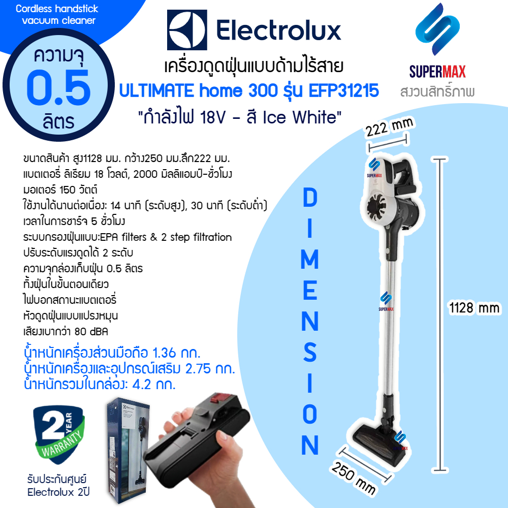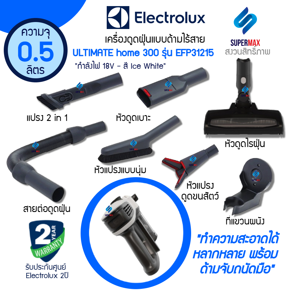 ราคาพิเศษELECTROLUX เครื่องดูดฝุ่นชนิดด้ามจับ 2in1แบตลิเธียม 18 โวลต์ รุ่น EFP31215 กำลังไฟถึง 150W แถมอุปกรณ์7 ชิ้น