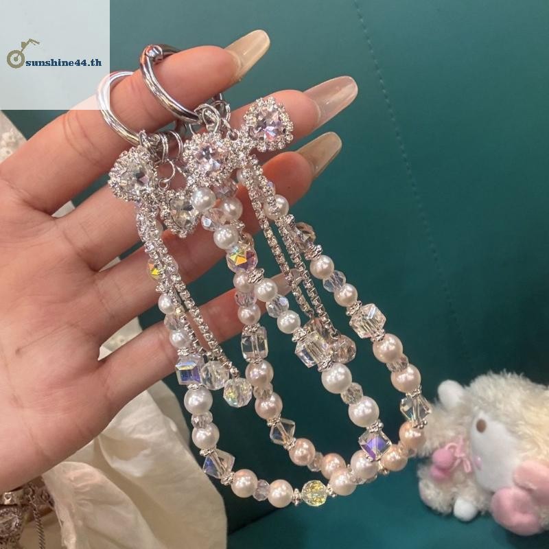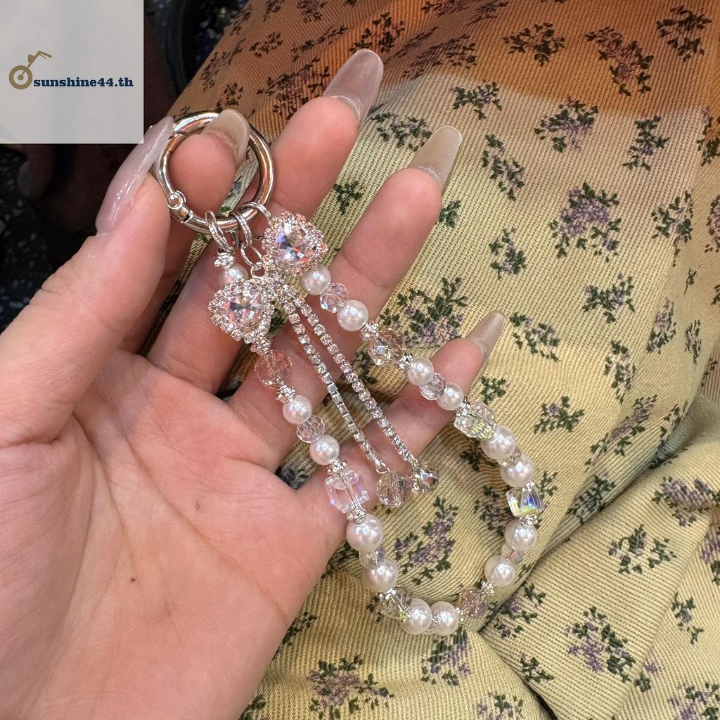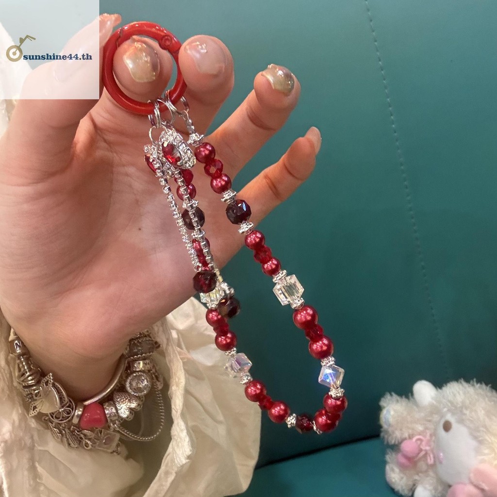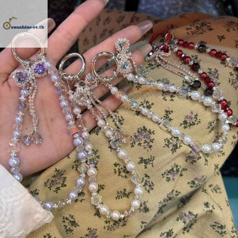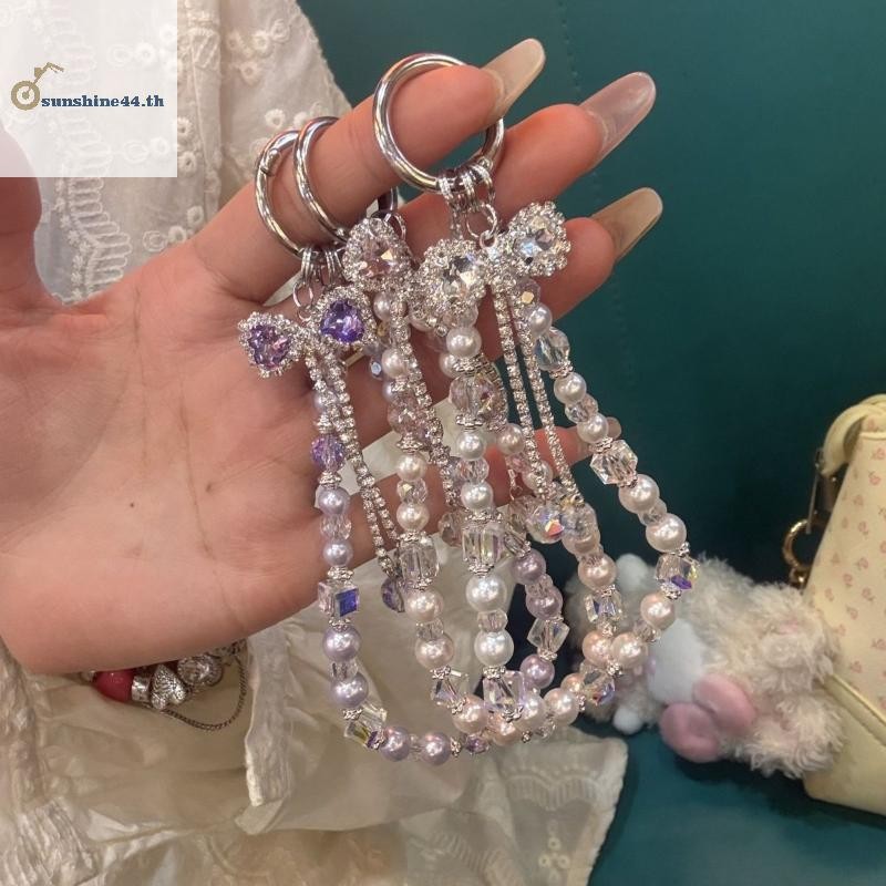 FOURSUN 1 ชิ้นแฟชั่นประกายโบว์โทรศัพท์จี้พวงกุญแจ Y2K โทรศัพท์ Charm สายรัดข้อมือลูกปัดโทรศัพท์มือถือ Lanyard TH