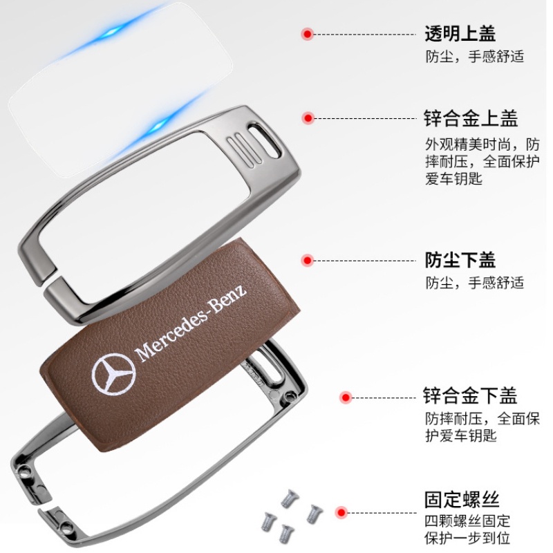 Mercedes-Benz High-grade Alloy Key Case Male for C-class E-class A-class E300L GLC220 C300 E200 BENZ Creative Intelligent All-inclusive Key Leather Case