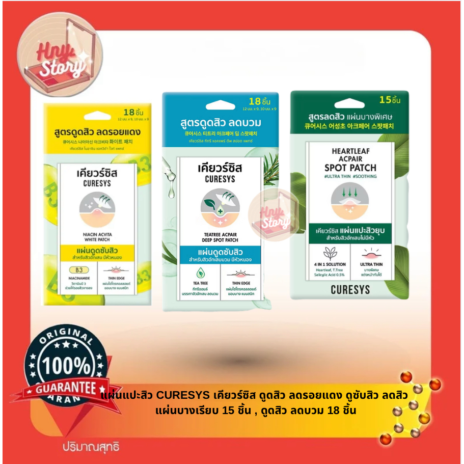 แผ่นแปะสิว CURESYS เคียวร์ซิส ดูดสิว ลดรอยแดง ดูซับสิว ลดสิว แผ่นบางเรียบ 15 ชิ้น , ดูดสิว ลดบวม 18 ชิ้น