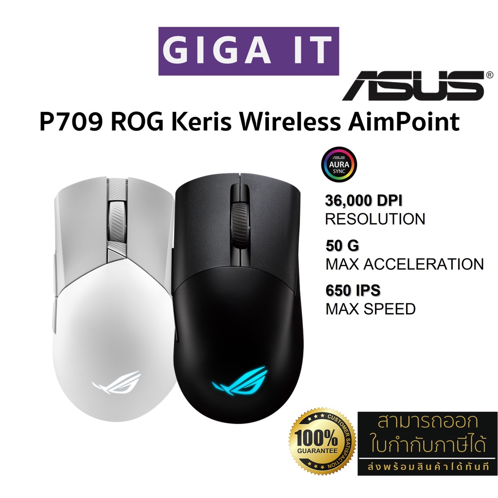 ASUS P709 ROG Keris Wireless AimPoint RGB Gaming Mouse (36000 DPI, RF 2.4GHz, Bluetooth, USB 2.0) ประกันศูนย์ 2 ปี