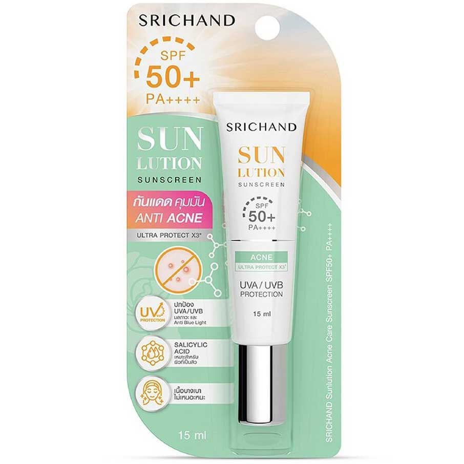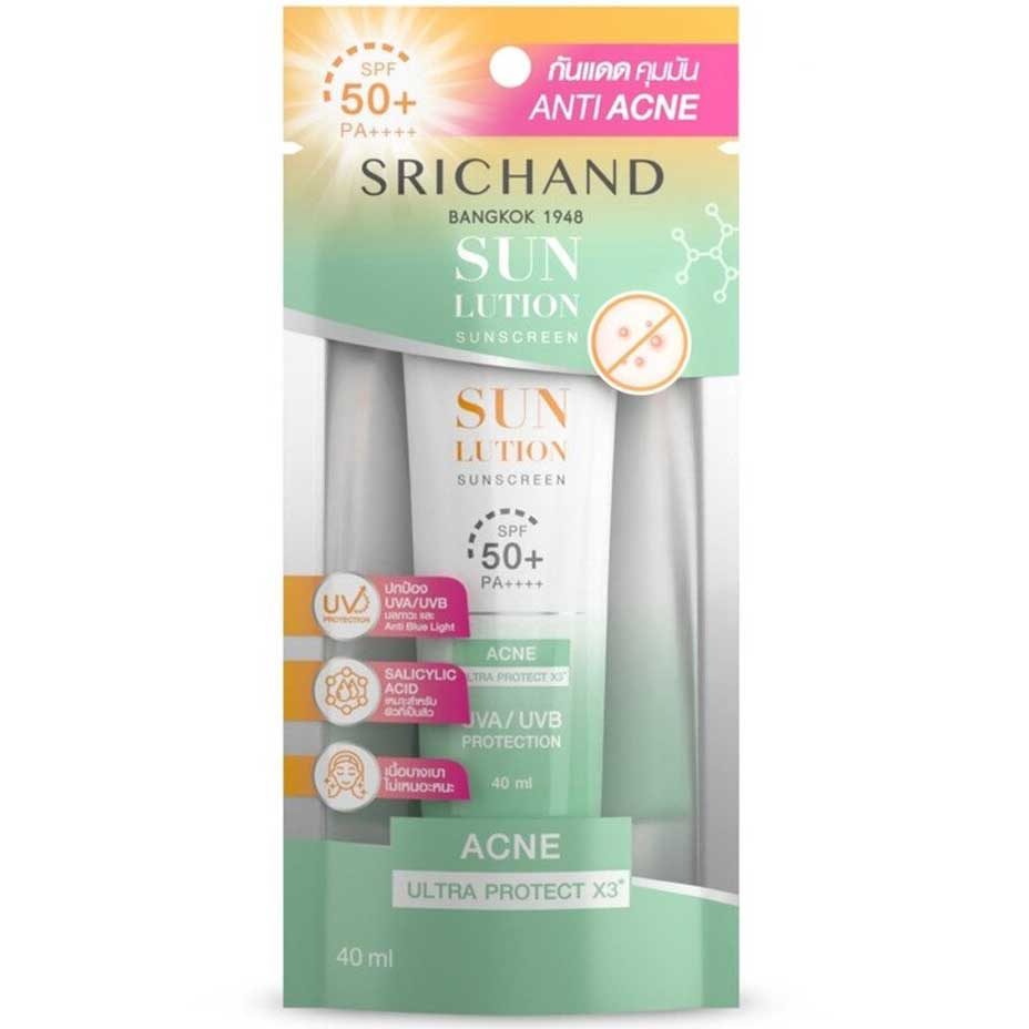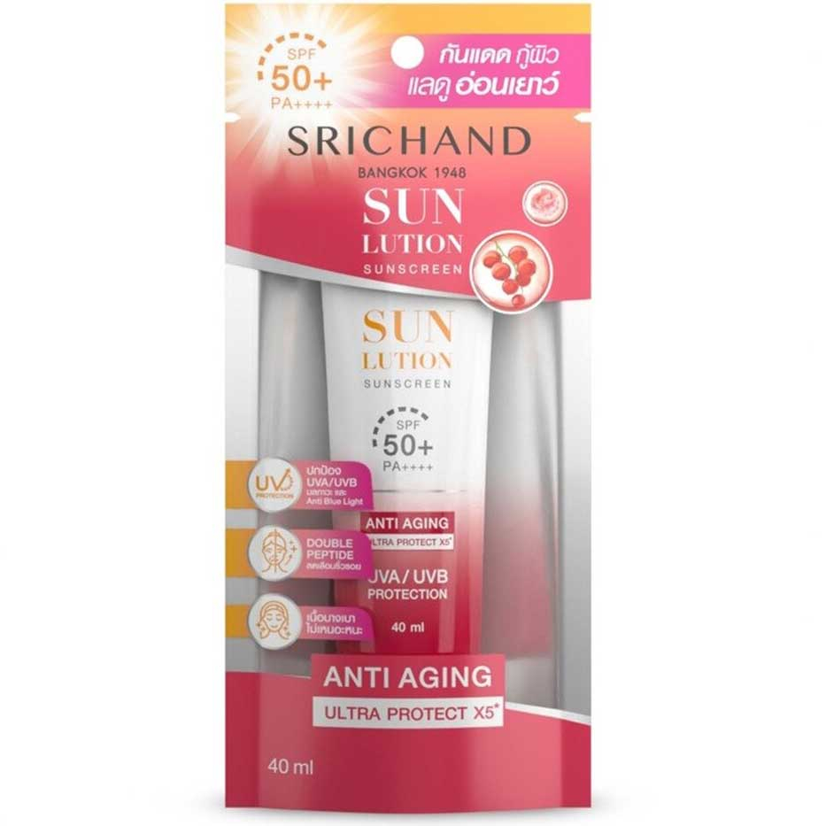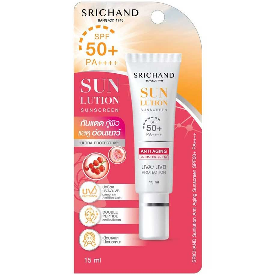 15-40ml กันแดด ศรีจันทร์ ซันลูชั่น ซันสกรีน Srichand Sunlution Sunscreen / Luminescence SPF50+ PA++++ ครีม