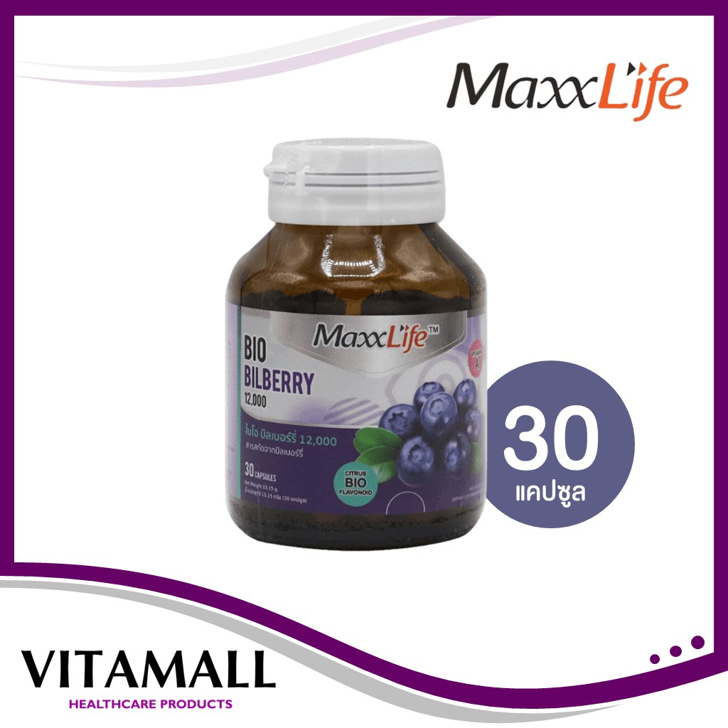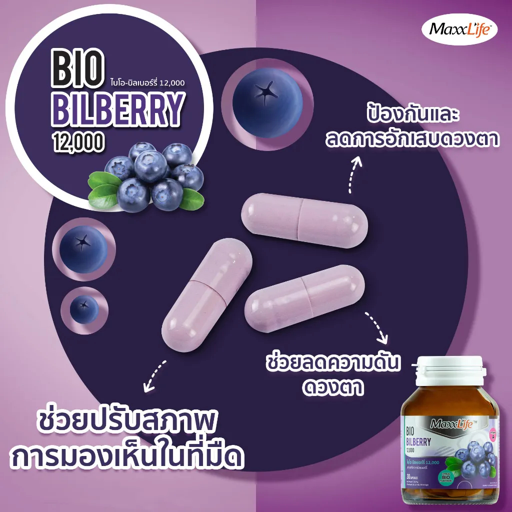 Maxxlife Bio Bilberry 30 capsules ไบโอ บิลเบอร์รี่ 12,000 บำรุงดวงตา