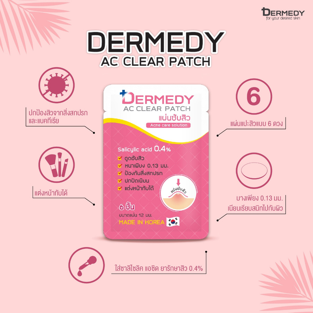 เดอร์มิดี เอซี คลีนเซอร์/ แอคเน่ สเปรย์/ แผ่นแปะสิว18ชิ้น DERMEDY Cleanser/ Acne Spray/Ac Clear Patch 18 pcs