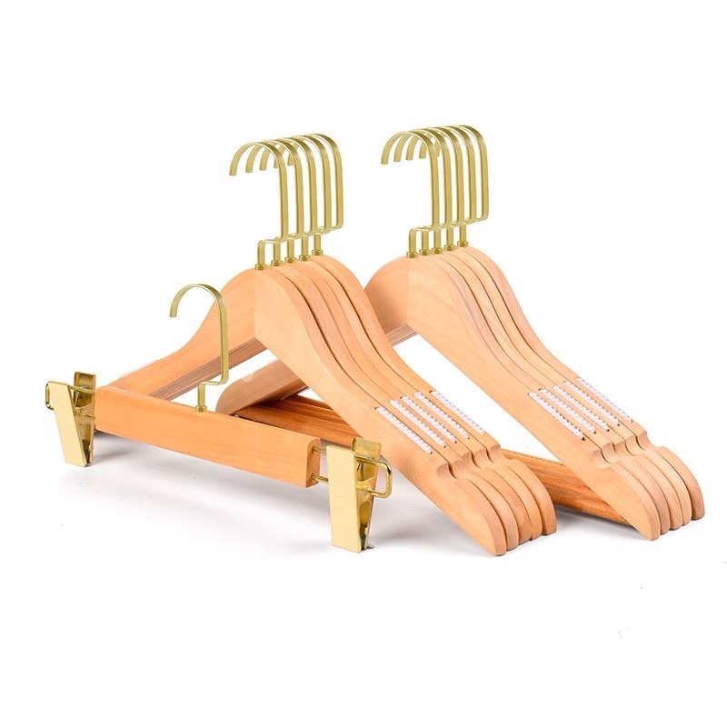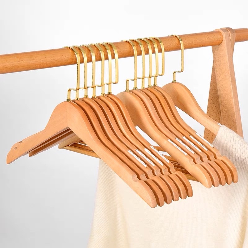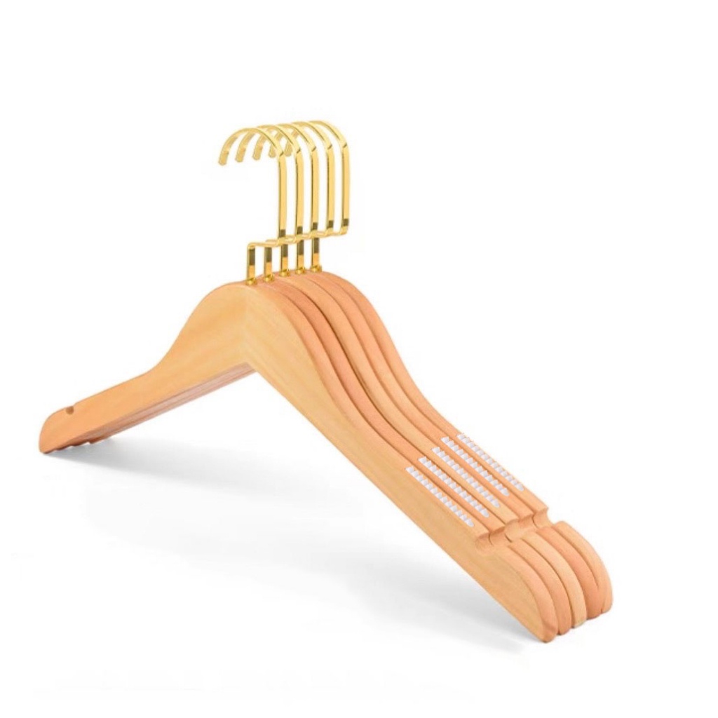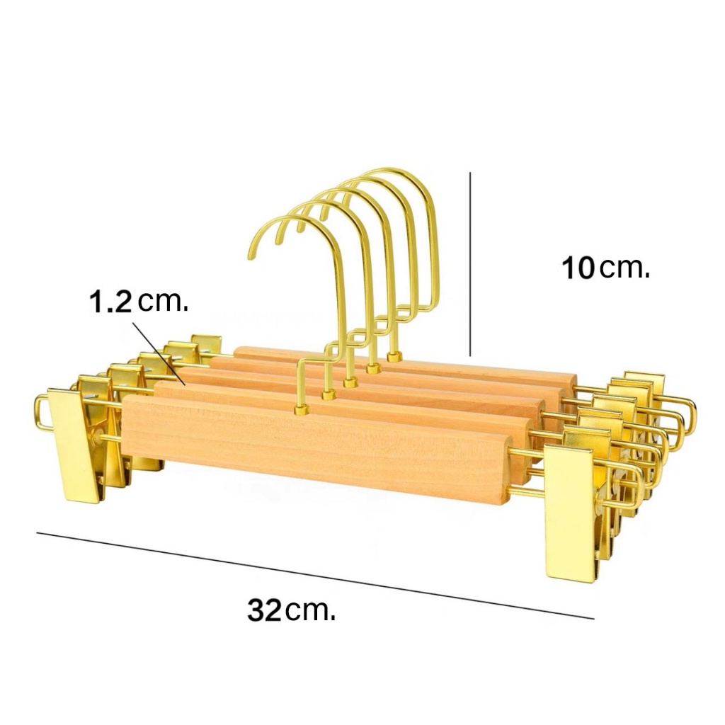Anastasia ไม้แขวนเสื้อ ไม้หนีบ มีกันลื่นและเคลือบสีใส ตะขอทองสั้น-ตะขอยาวเงิน