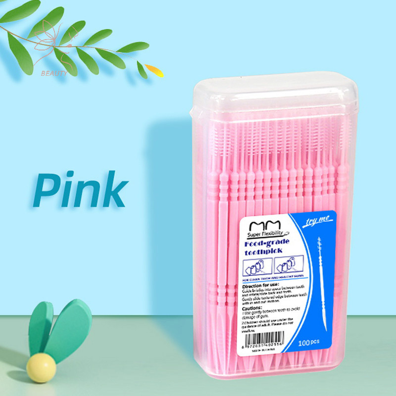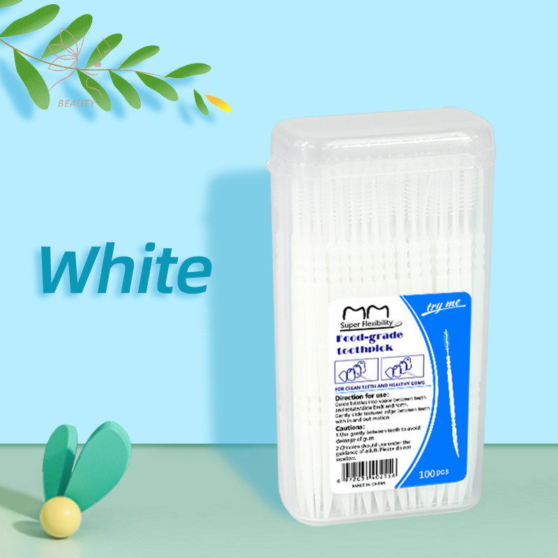 [maybeauty] 100 ชิ้น/กล่อง Double Floss Interdental ไม้จิ้มฟันแปรงฟัน Stick Oral Care ไม้จิ้มฟันไหมขัดฟัน Pick {TH}