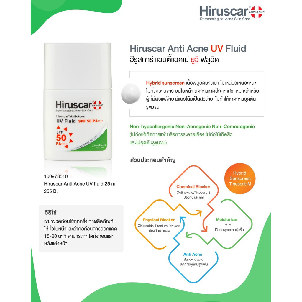 Hiruscar Anti-Acne UV Fluid SPF 50++++ ฮีรูสการ์ แอนตี ้แอคเน่ ยูวี ฟลูอิด 25กรัม #7968