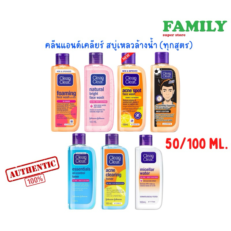 Clean&Clear คลีนแอนด์เคลียร์ สบู่เหลวล้างหน้า, โทนเนอร์และคลีนซิ่งวอเตอร์ ขนาด 50/100 มล [006]