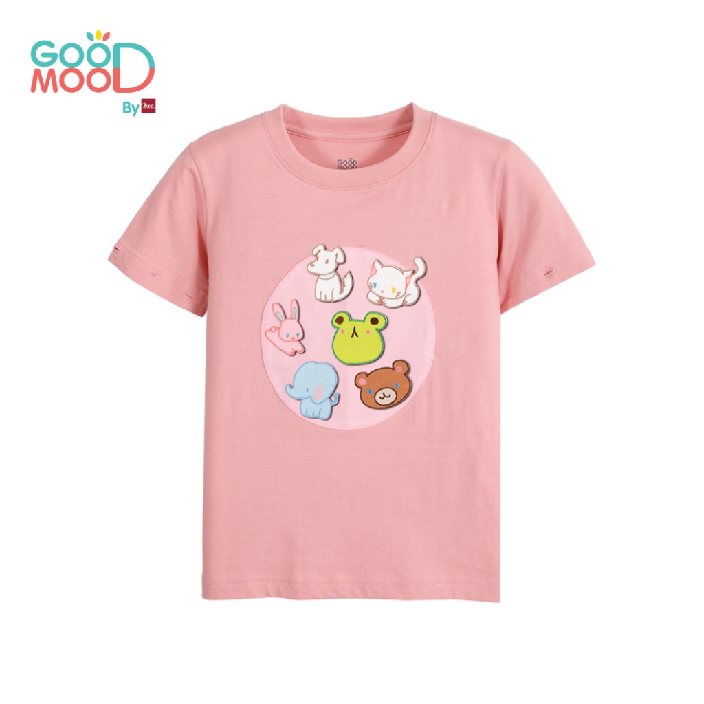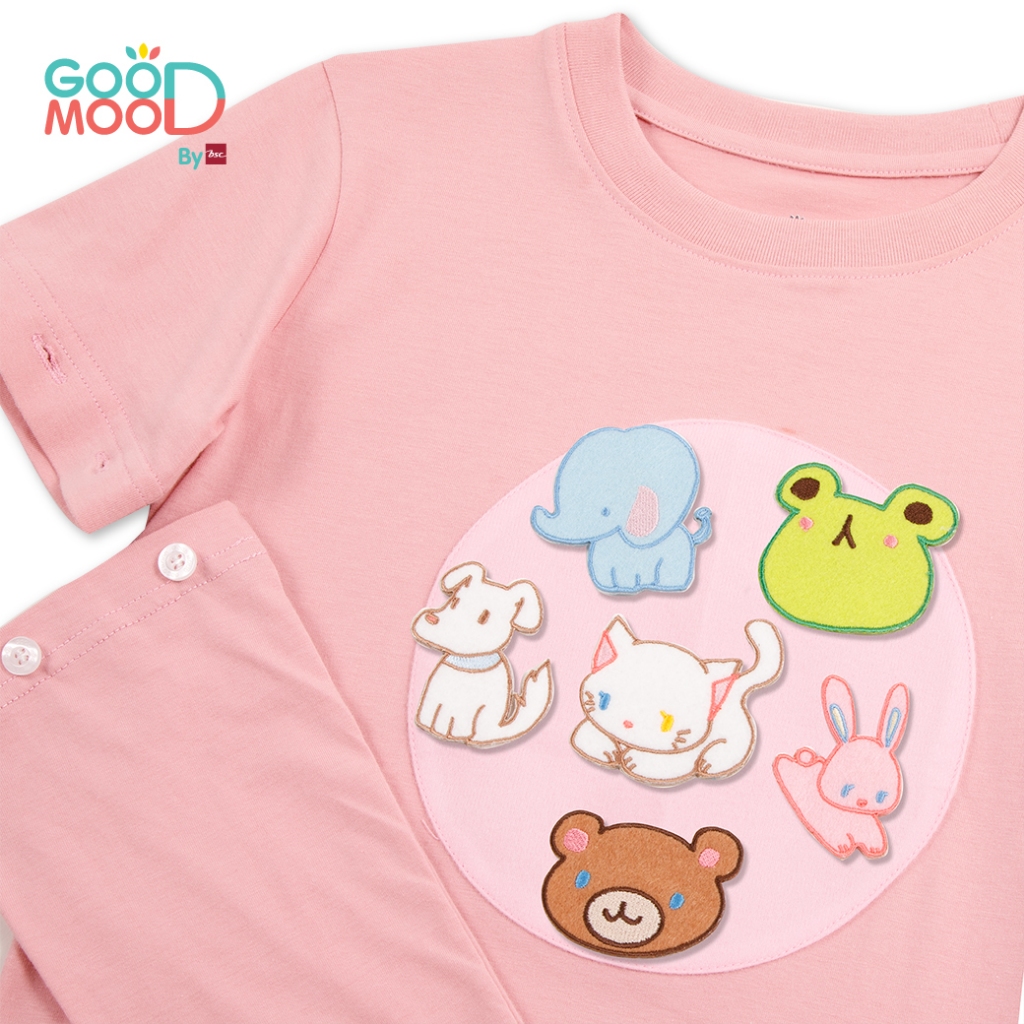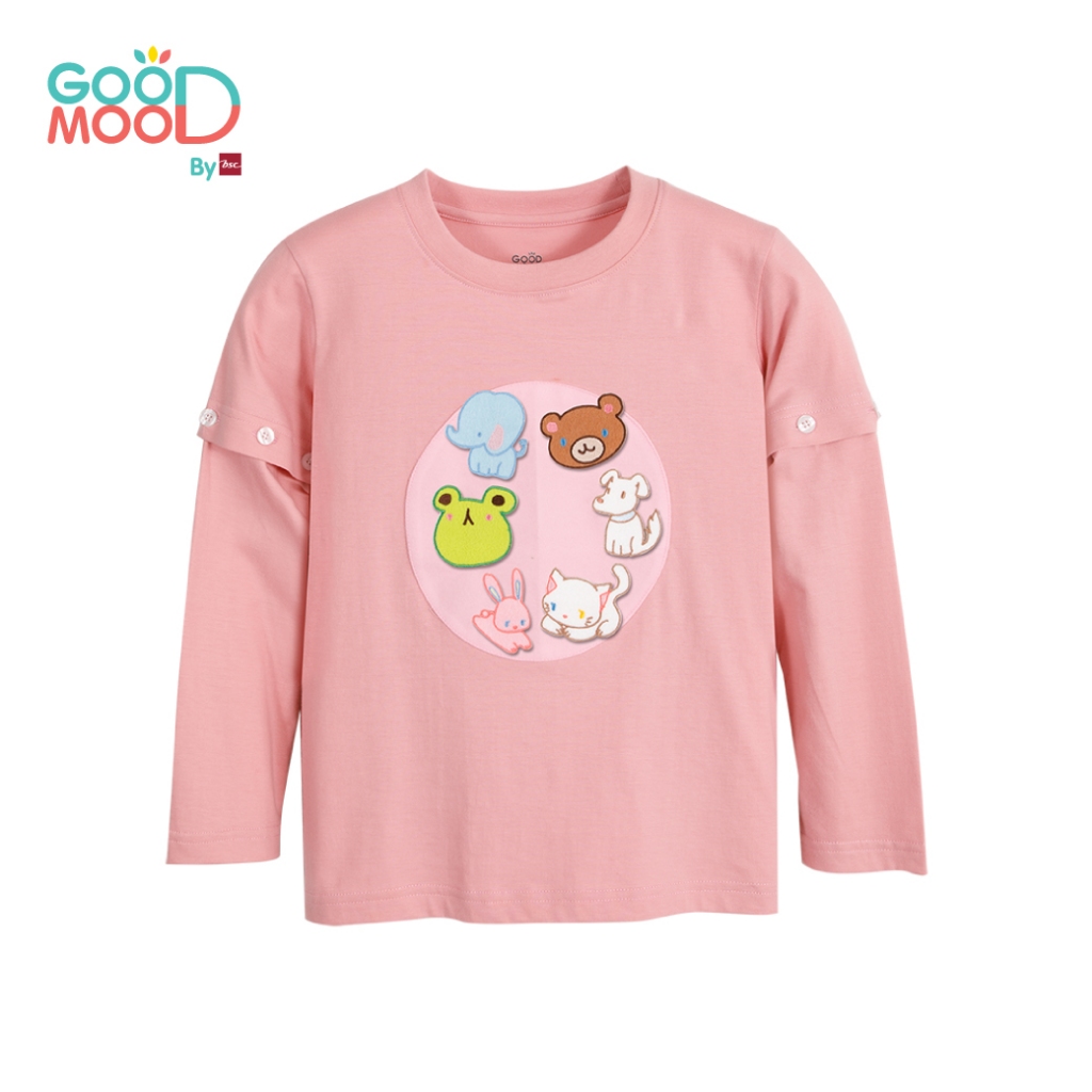 Good Mood by bsc เสื้อยืดคอกลมแขนยาวถอดแขน สีชมพู + PATCHES ลายสัตว์ 6 ชิ้น สำหรับเด็กอายุ 4-5 ปี ผ้าคอตตอน