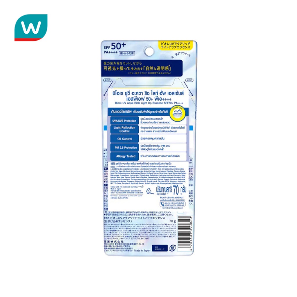 Biore บิโอเร ยูวี อะควา ริช ไลท์ อัพ เอสเซ้นส์ เอสพีเอฟ 50+ พีเอ++++ 70 กรัม