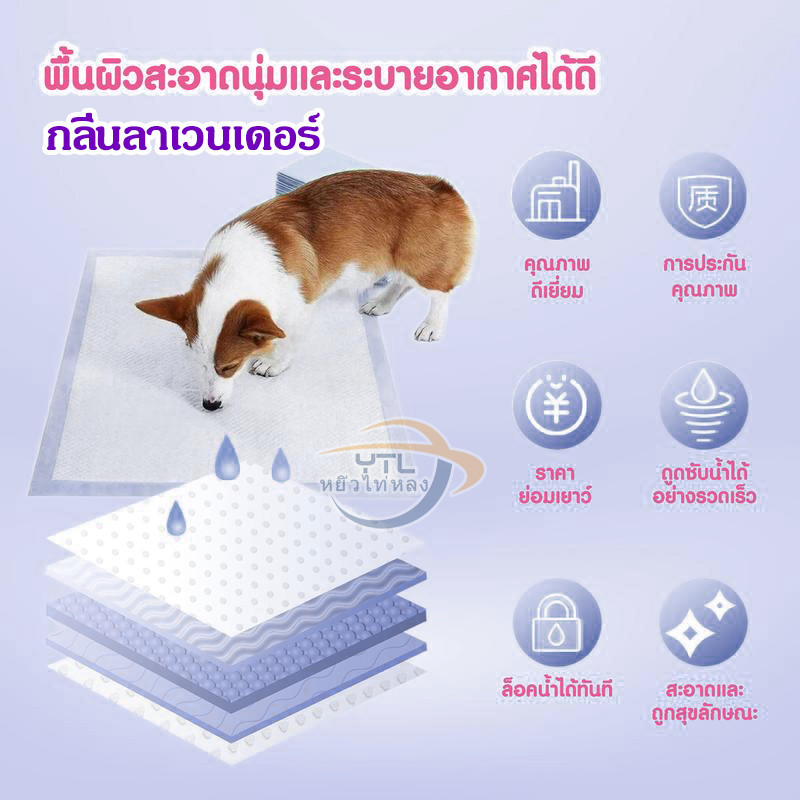 YTL【มีกลิ่นลาเวนเดอร์ 】แผ่นรองฉี่ แ ผ่นรองฉี่สุนัข แผ่นรองฉี่แมว ไม่มีกาวแปะ ช่วยฝึกขับถ่าย ซึมซับได้ดี กักเก็บกลิ่น