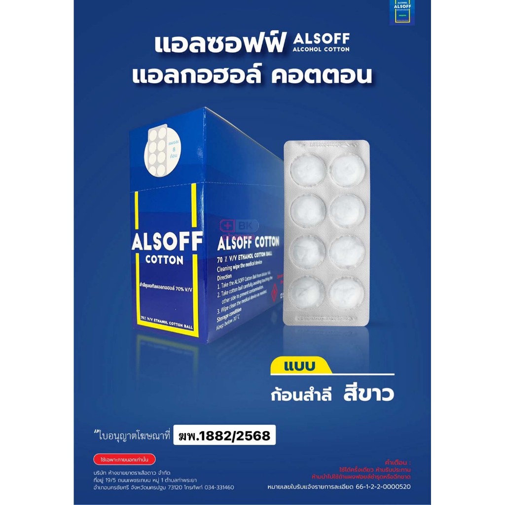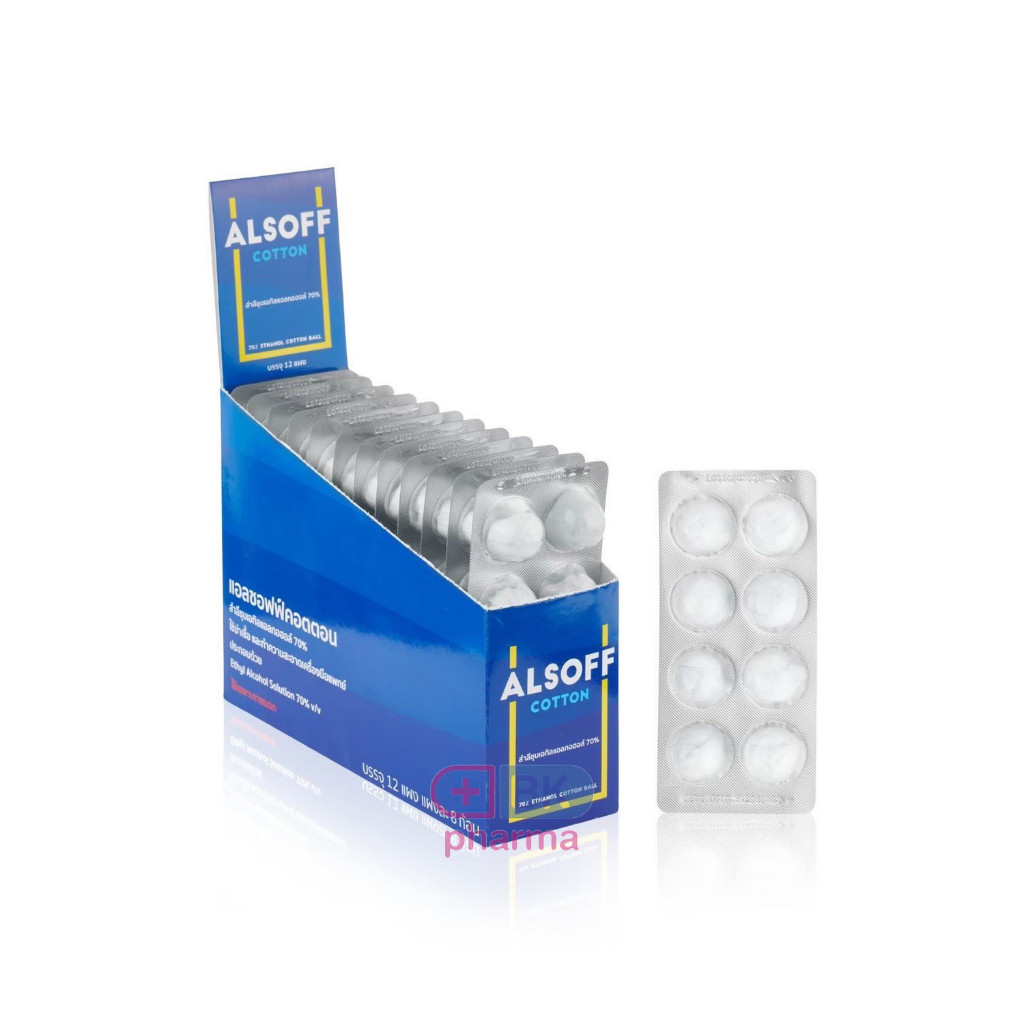 Alsoff Alcohol Cotton Ball สำลีชุบแอลกอฮอล์ สำลีก้อนชุบแอลกอฮอล์ 8x12 ชิ้น 1 กล่อง