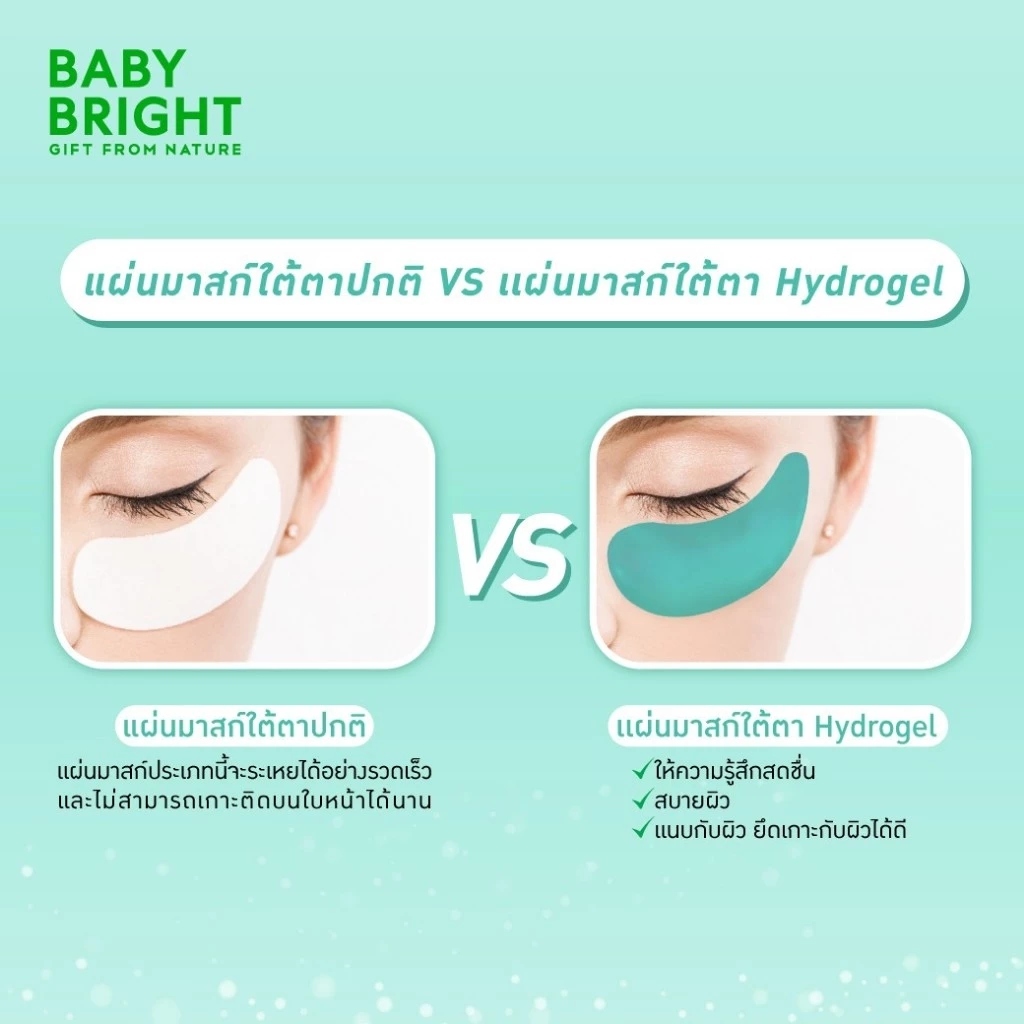 (1 ซอง) Baby Bright Git From Nature เบบี้ไบร์ทแผ่นเจลมาส์กสำหรับใต้ตา มีให้เลือก 2 สูตร (1 คู่)