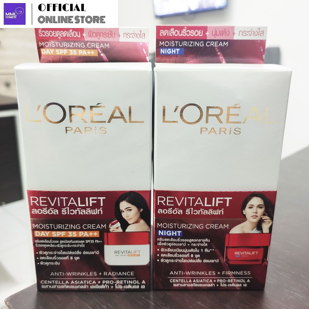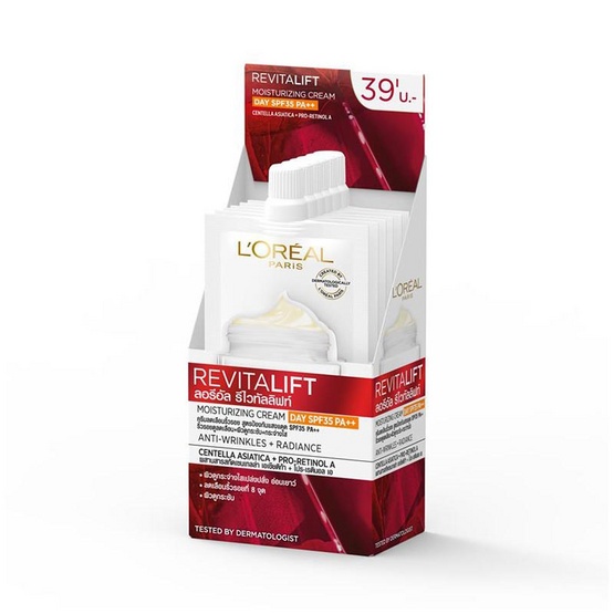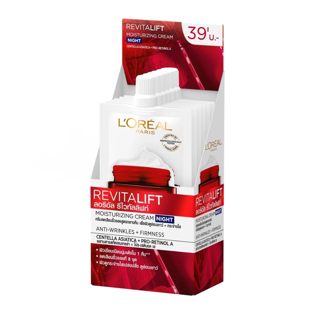 Loreal ลอรีอัล ปารีส รีไวทัลลิฟท์ แอนไ ท-ริงเคิล/แอนตี้-ริงเคิล+เฟิร์มมิ่ง เดย์/ไนท์ ครีม 7มล.(แบบซอง)(กล่อง6ซอง)