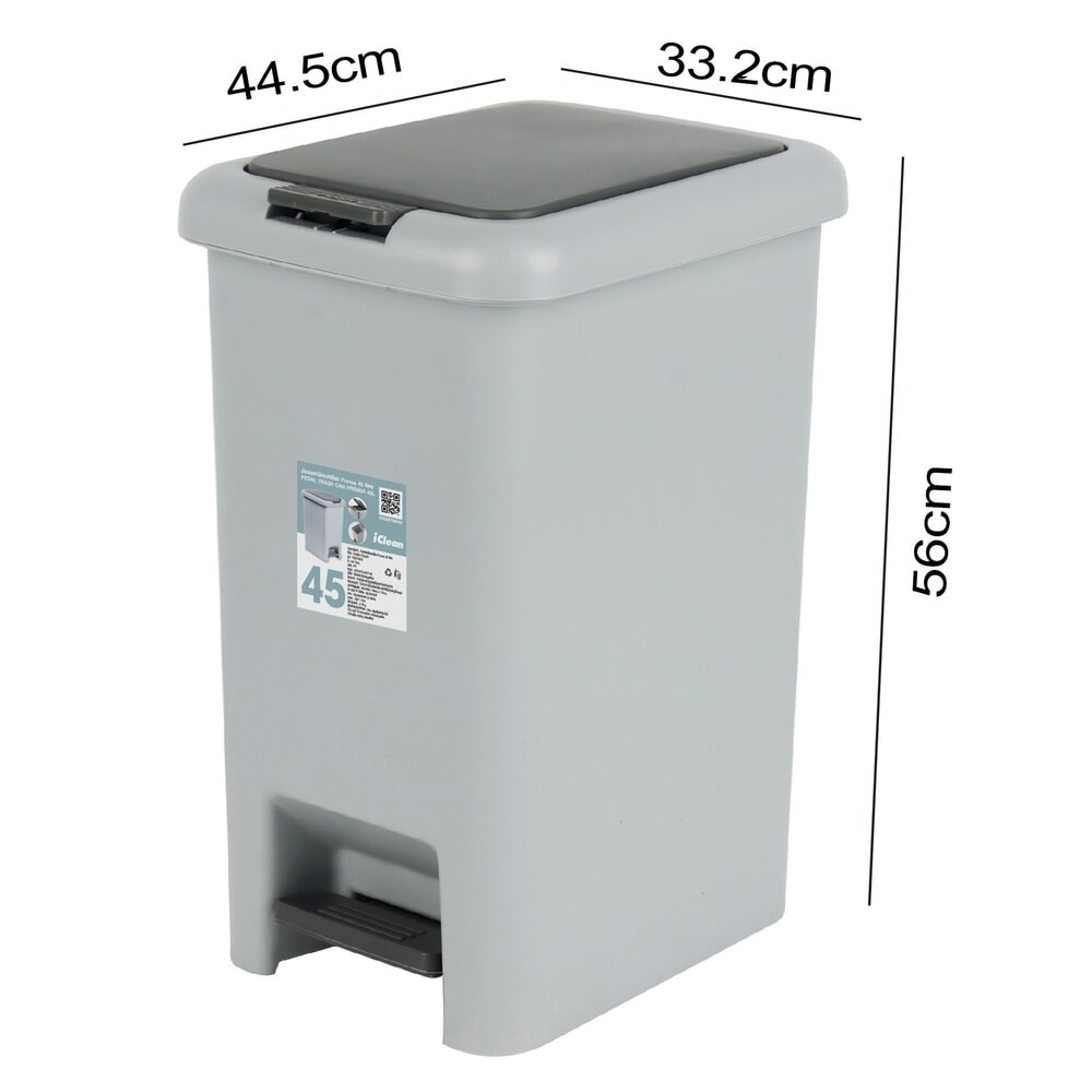 GlobalHouse ICLEAN ถังขยะเหยียบเหลี่ยม Prensa 45 ลิตร รุ่น TG51792G ขนาด 33.2x44.5x56 ซม. สีเทา สินค้าของแท้คุณภาพดี