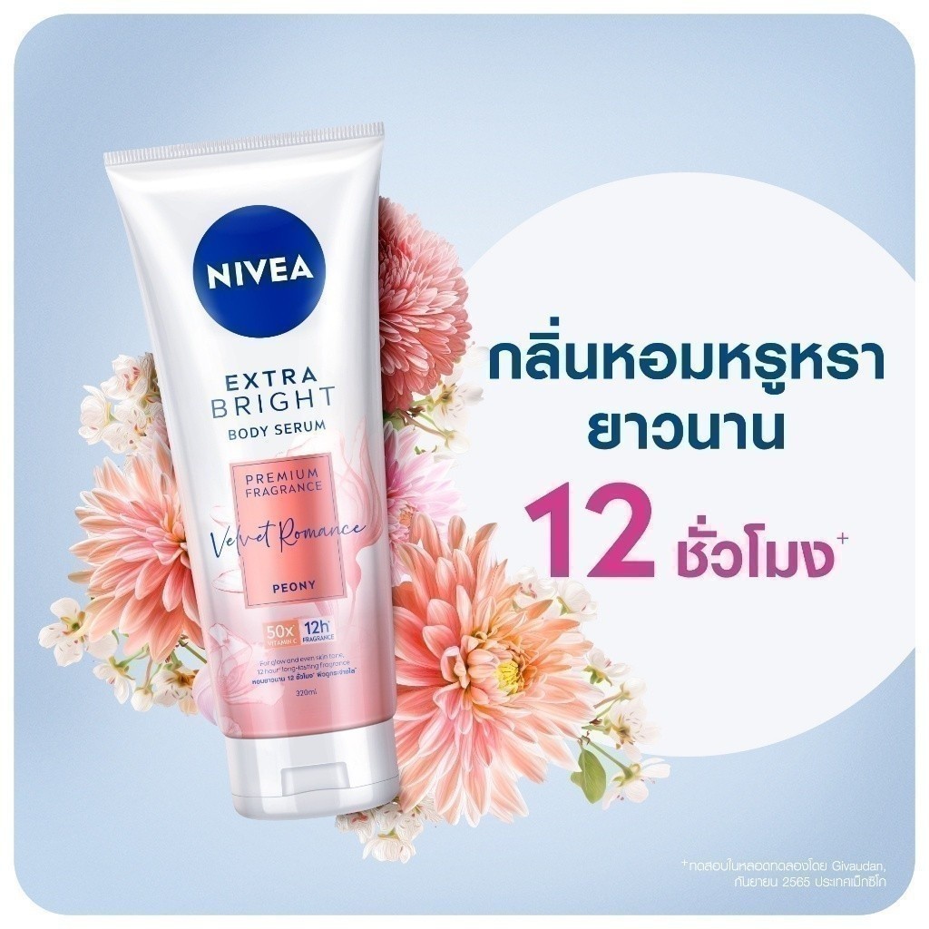 นีเวีย เอ็กซ์ตร้า ไบรท์ บอดี้ เซรั่ม พรีเมียม ฟราแกรนซ์ เวลเว็ท โรแมนซ์ พีโอนี320มล.2ชิ้น NIVEA