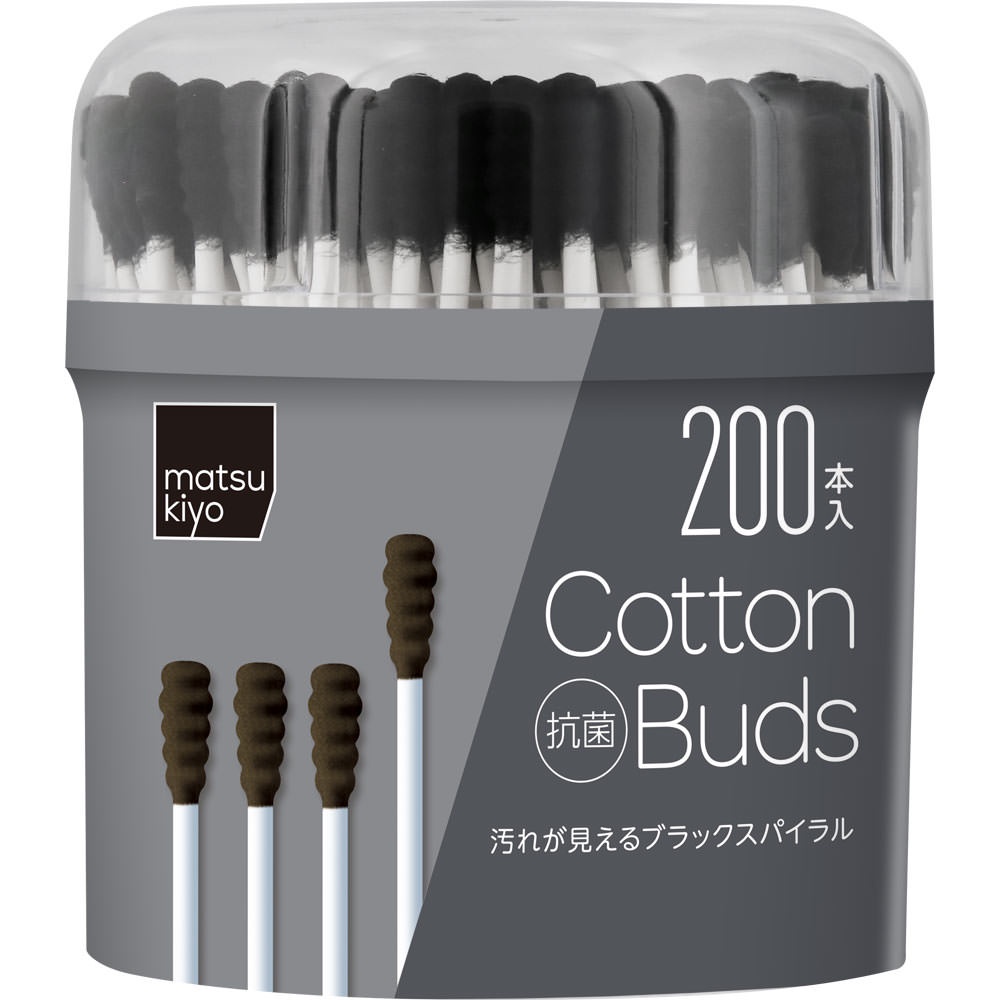 MATSUKIYO BLACK COTTON BUDS 200 pieces มาซึคิโยแบล็คคอตตอนบัดส์รูปทรงเกลียวสีดำ 200ชิ้น