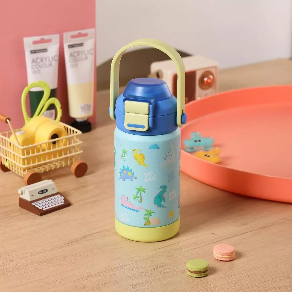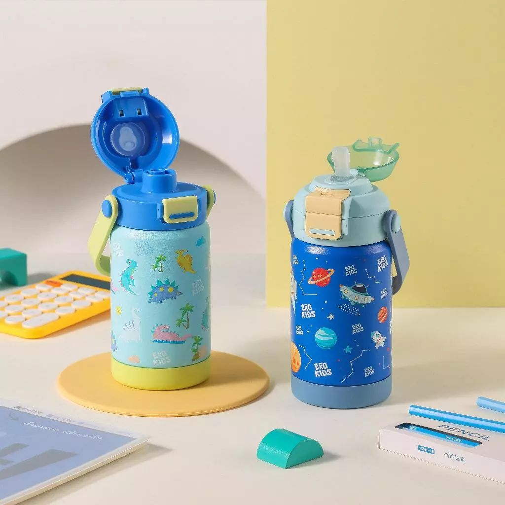 EKOZOU EKOKIDS ขวดน้ำเด็ก สแตนเลส 304 เคลือบเซรามิก ปลอดภัย มีหลอดดูด ฝาสองชั้น เก็บอุณหภูมิ 360ml (12oz)